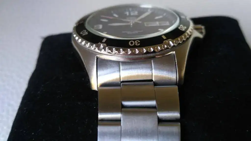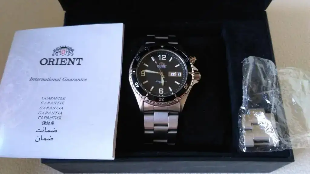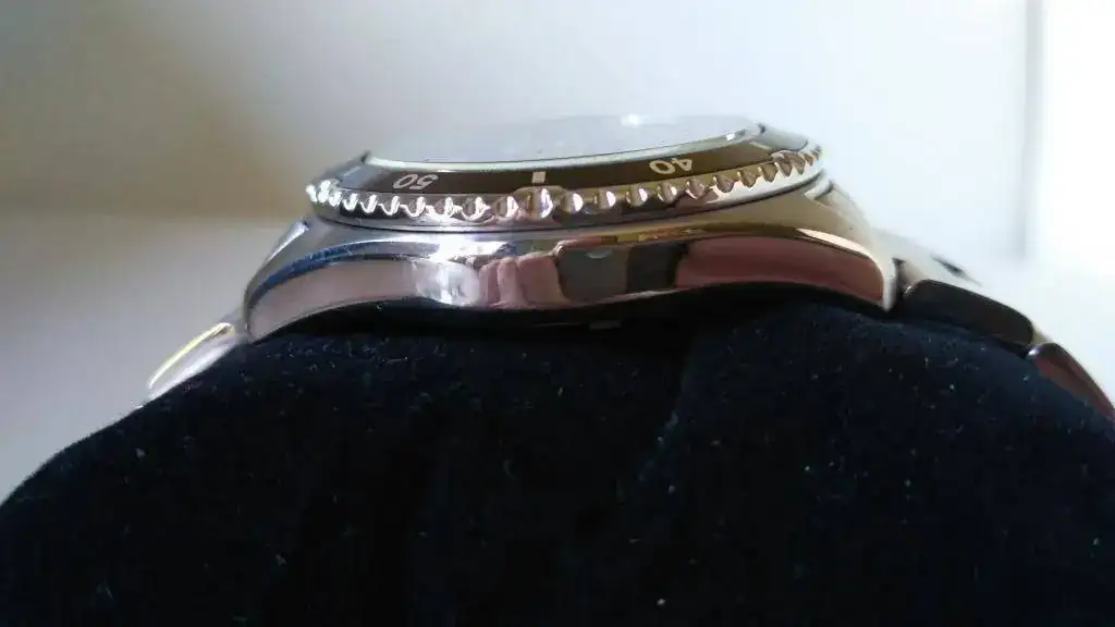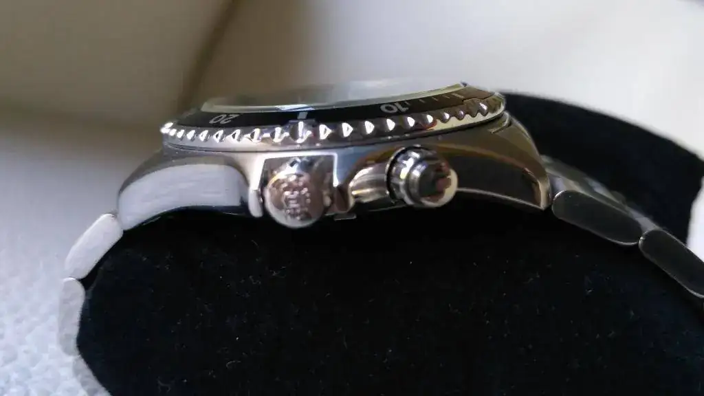 Aunque lleva conmigo desde hace bastantes años, ha sido muy bien tratado, y con puestas bastante limitadas. Tiene pocas marcas de uso en caja, bisel, cierre y brazalete que creo haber captado al menos en su mayoría con las fotos, y muy ligeras en el cristal que no he sido capaz de captar. Aunque no lo he comprobado la marcha recientemente, no hace mucho que lo lo hice, y era excelente. Viene con su caja original, documentación con sello de la tienda (garantía obviamente expirada), y los eslabones sobrantes (viene ajustado a una muñeca de 17 cm).