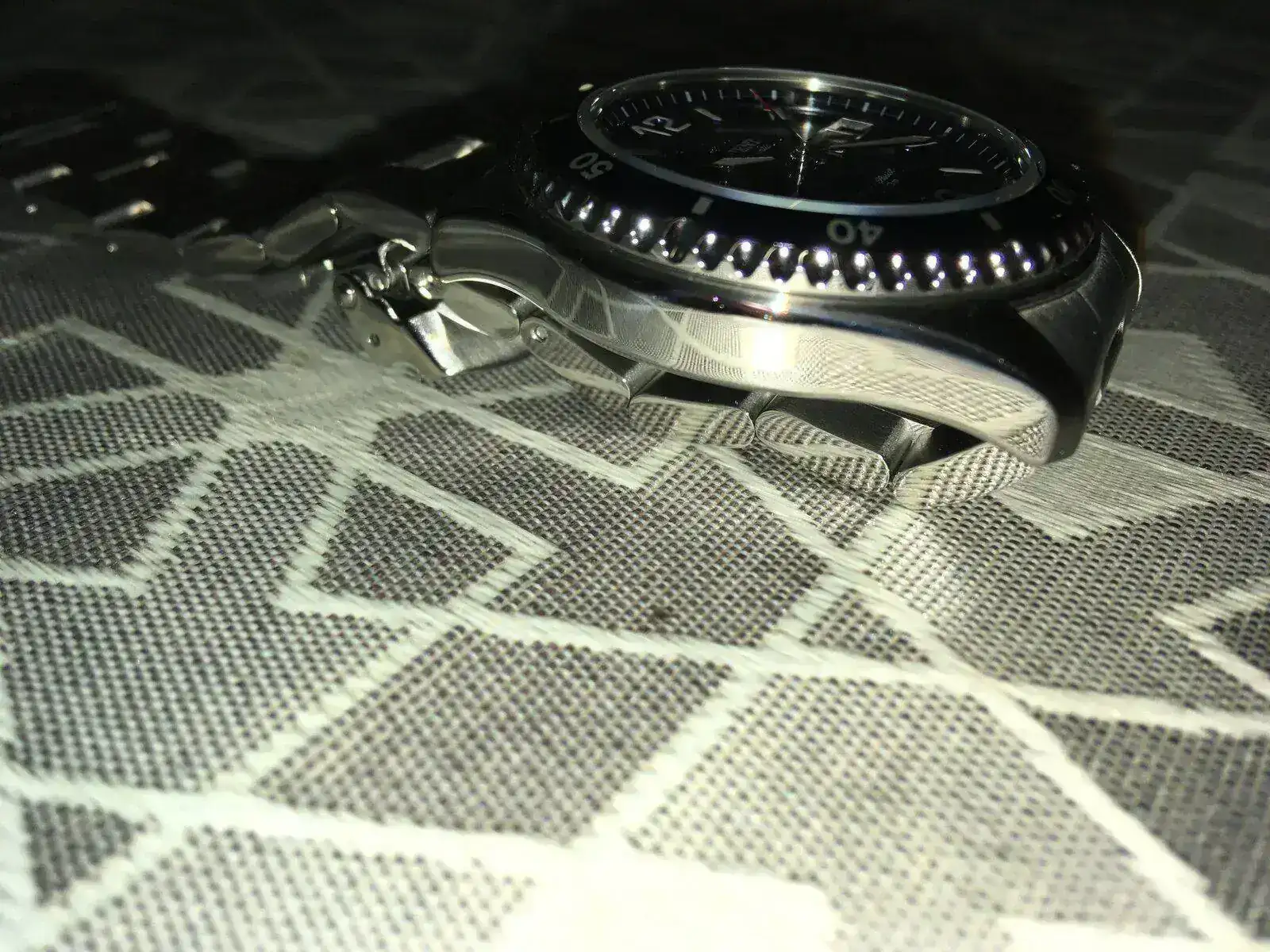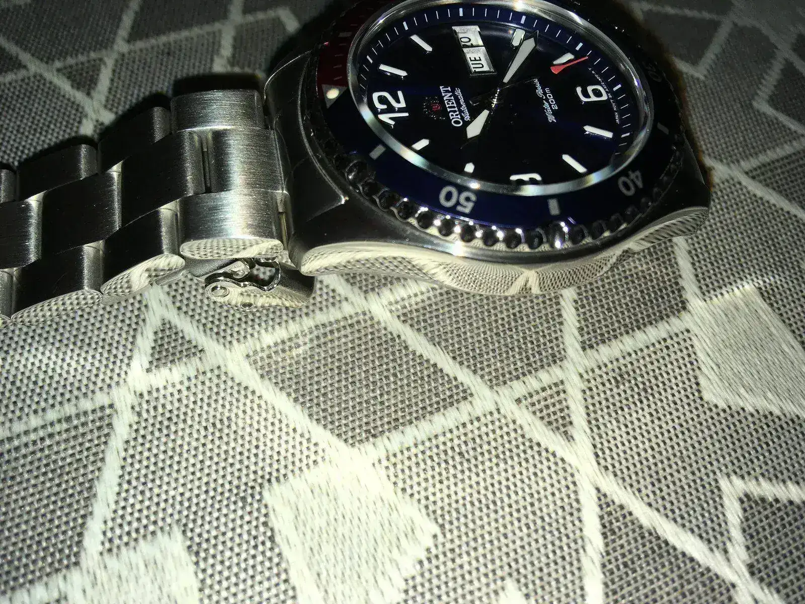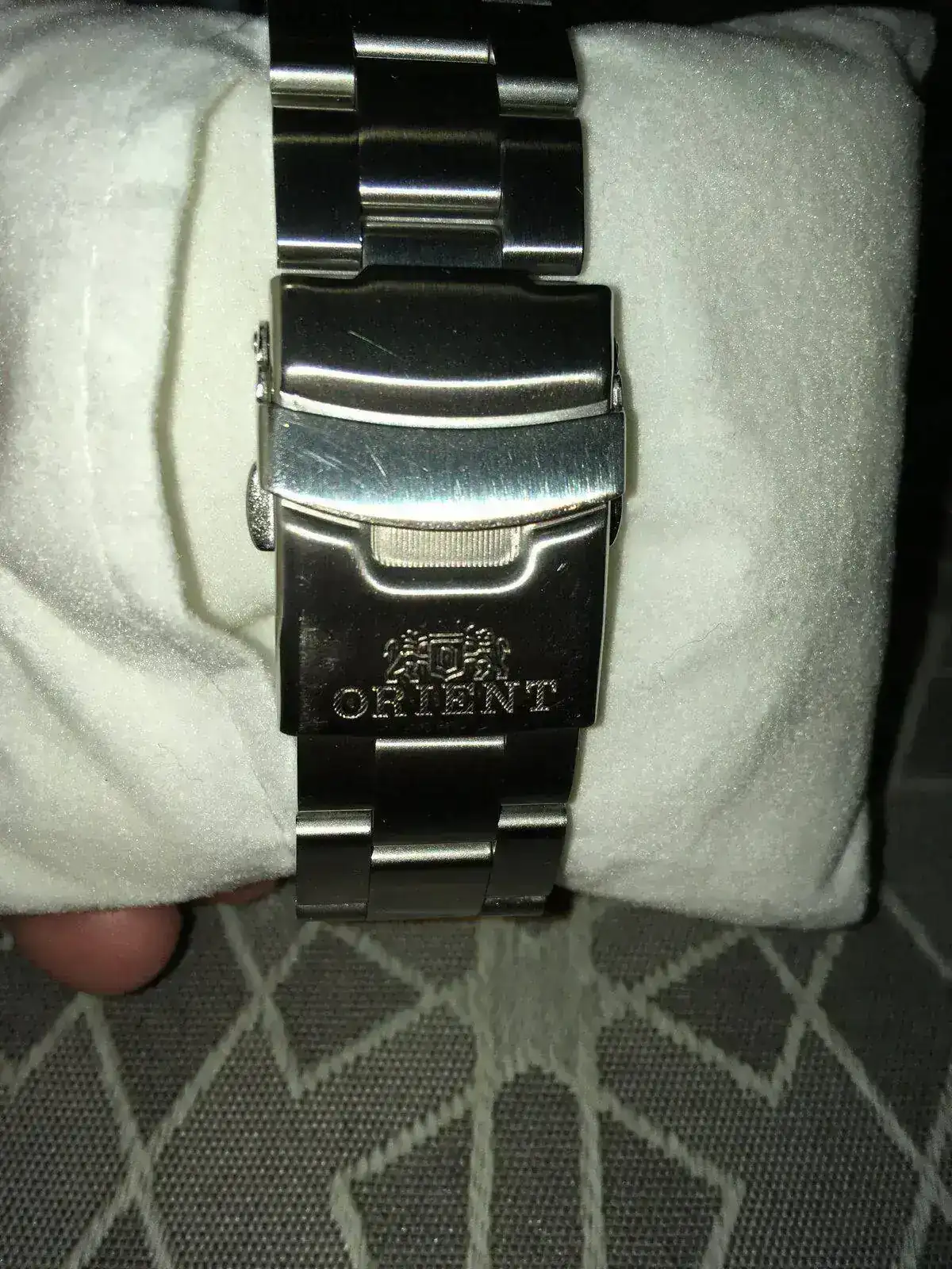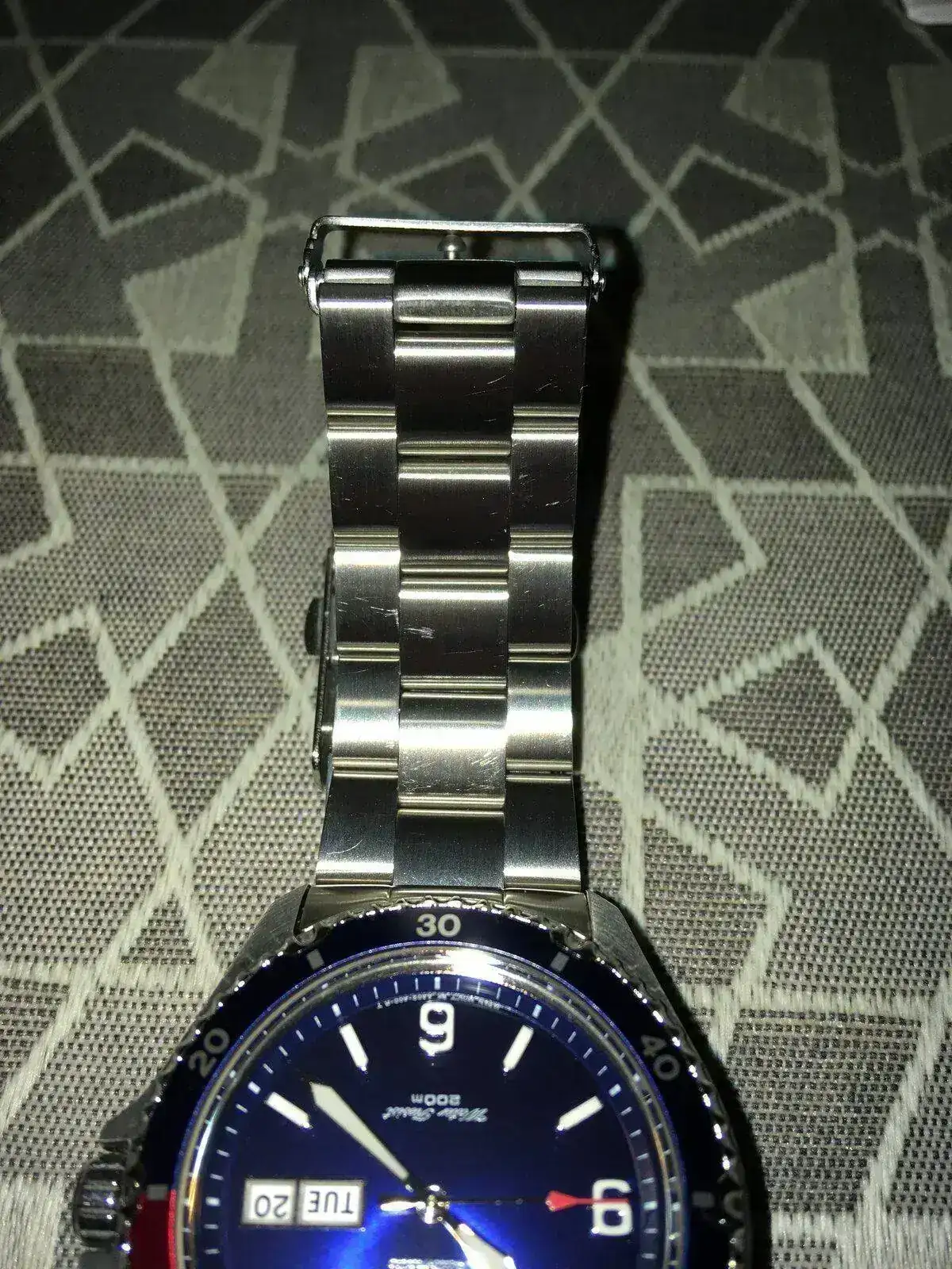 En muy buen estado, se ha puesto poco desde que lo compré, alguna vez que otra algún rato. Como se puede ver en general está en buen estado, pero el armis en algún sitio tiene las típicas marcas de uso que a nada que lo pongas se hacen. El resto perfecto, sin rayones ni golpes ni nada. Se entrega con todo lo que vino, incluidos los eslabones que quité cuando lo ajusté. Mecanismo muy fiable y exacto, poca desviación diaria... la última vez que lo puse en el cronocomparador estaba entre -3, +5, y en algunas posiciones +8sec/día, lo cual son muy buenos valores. Remonte manual y parada de segundero.