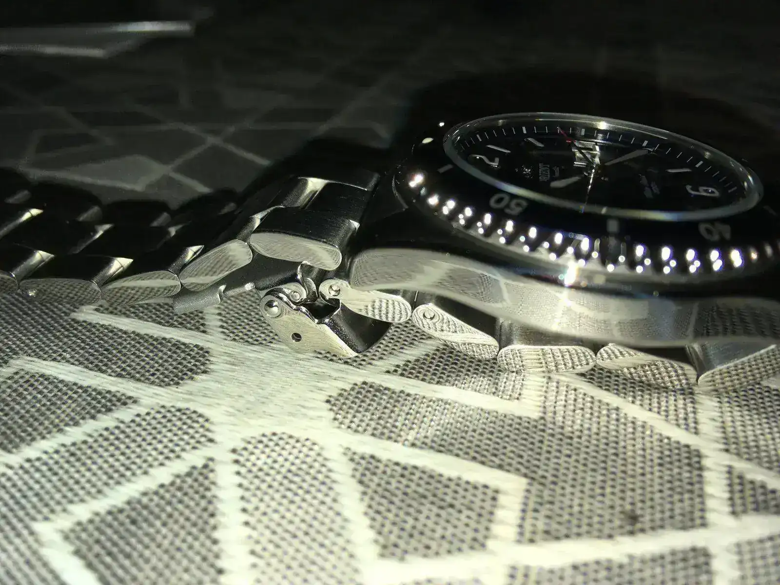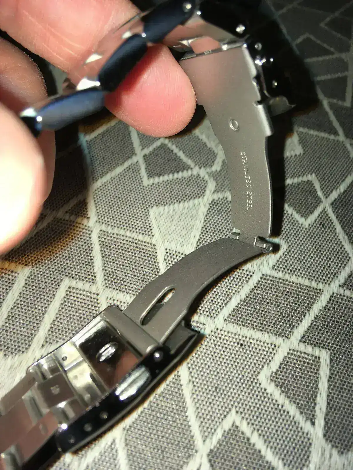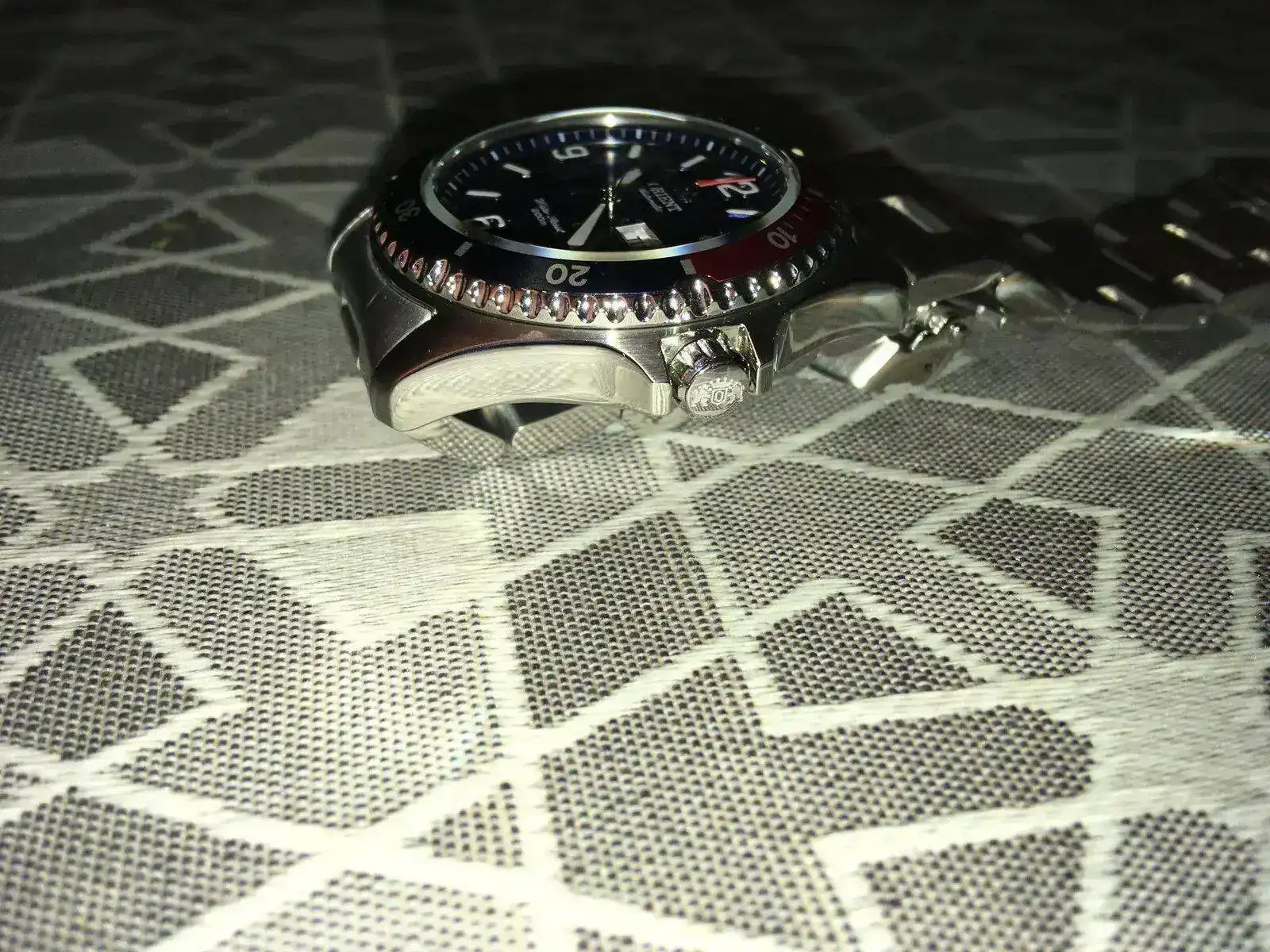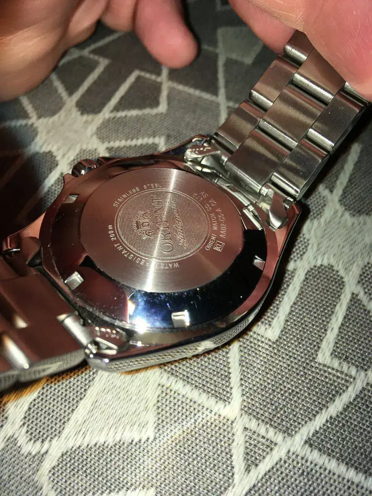 En muy buen estado, se ha puesto poco desde que lo compré, alguna vez que otra algún rato. Como se puede ver en general está en buen estado, pero el armis en algún sitio tiene las típicas marcas de uso que a nada que lo pongas se hacen. El resto perfecto, sin rayones ni golpes ni nada. Se entrega con todo lo que vino, incluidos los eslabones que quité cuando lo ajusté. Mecanismo muy fiable y exacto, poca desviación diaria... la última vez que lo puse en el cronocomparador estaba entre -3, +5, y en algunas posiciones +8sec/día, lo cual son muy buenos valores. Remonte manual y parada de segundero.