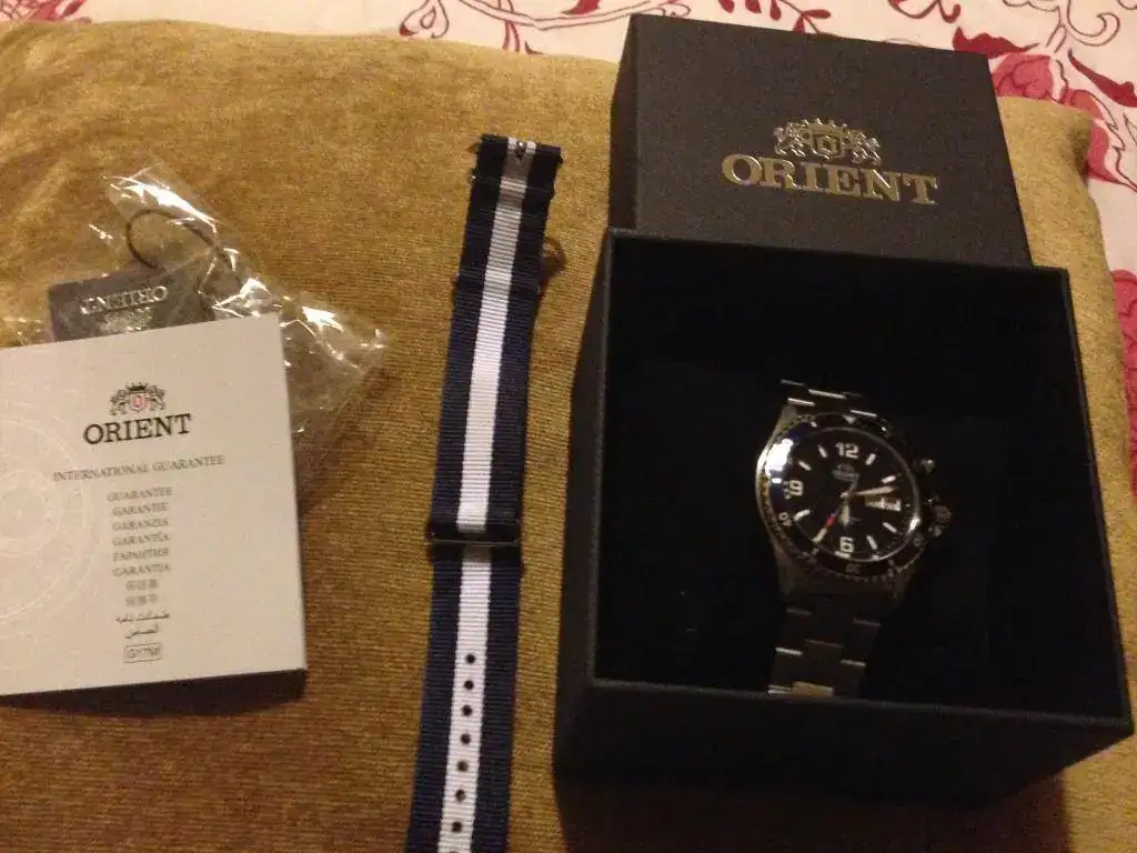 En el afán de reducir caja saco a venta este famoso reloj Orient mako 1 en azul. El reloj es de mayo de este mismo año y regaló una nato azul y blanca que ha llevado en verano y queda genial.