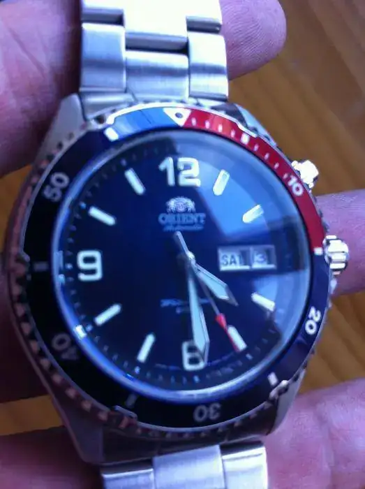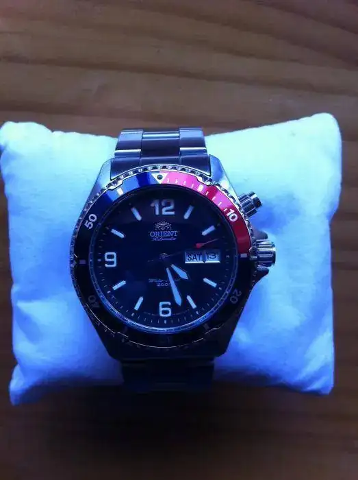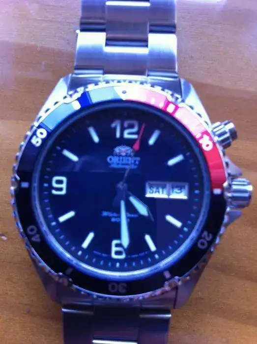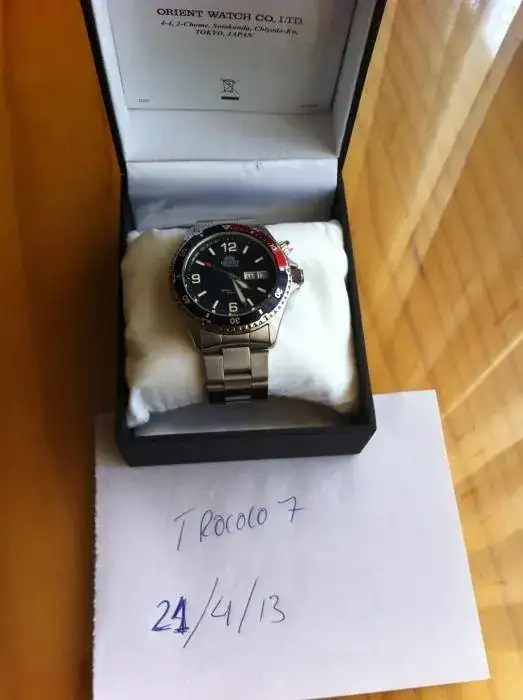 Pues eso, un diver la mar de bonito, con muy pocas puestas, en un estado excepcional. 41 mm de caja, corona roscada, pulsador para cambiar el día de la semana, que, curiosamente se puede leer en inglés e italiano. El armis es de acero inoxidable macizo y con un aspecto de resistencia como no he visto en muchos relojes. El bisel unidireccional es bicolor, el famoso "pepsi". Esfera azul y agujas e índices de gran luminosidad. Viene con su caja y eslabones sobrantes. La garantía expiró hace muy poquito. Pido por él 95 euros con gastos de envío incluidos a península. No cambios.
