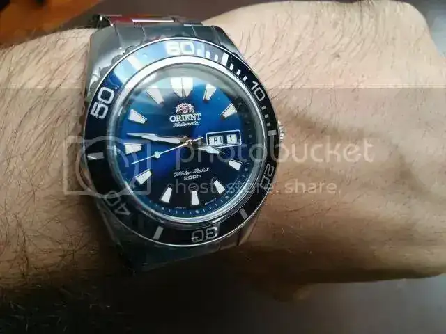 pongo a la venta este Orient Mako II de color azul que me llego como parte del pago de otro reloj. Es un reloj muy conocido en el foro, del que solo puedo decir que me ha sorprendido muchisimo su precioso color azul. Lo habia tenido en otros colores (negro y naranja) y no me parecieron ni la mitad de bonitos. Lo vendo porque ya tengo demasiados relojes y lo que necesito es pescar dinero.