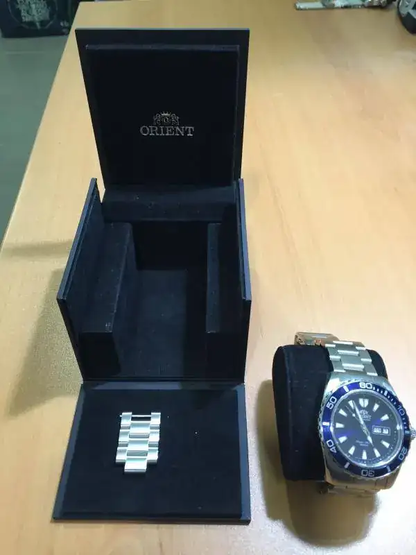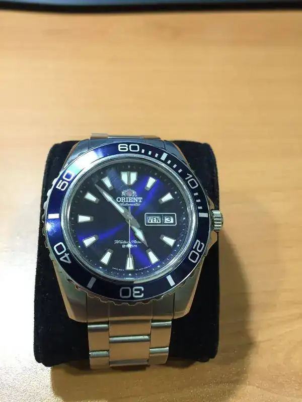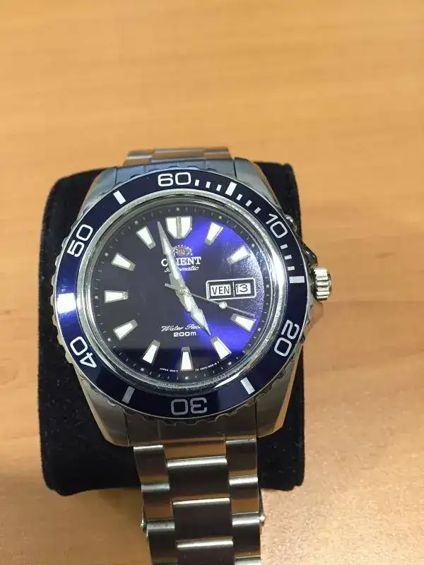 Debido al exceso de relojes tengo que desprenderme de algunos y el que va a salir al ser es este mítico Orient Mako II en Azul, con las características que viene con baño de superluminova y cristal de zafiro, en un estado realmente bueno (algunos pelillos típicos en el armis), con caja de acero con bisel unidireccional resistente 100m., con calendario día y fecha en inglés y español, viene con la caja interior pero sin papeles.