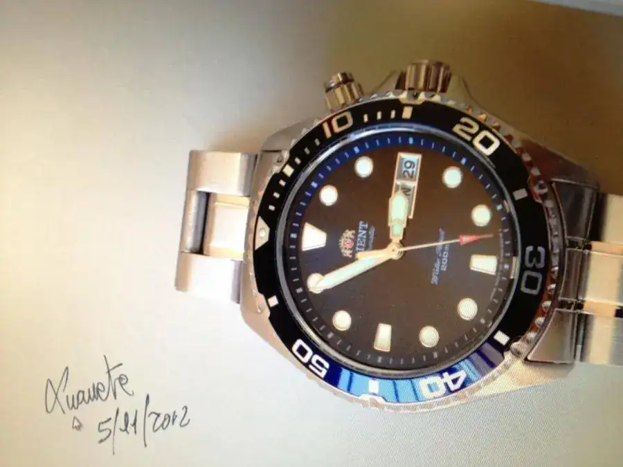 Pongo a la venta este conocido Orient, con unos meses de antigüedad, caja y papeles y en estado de absoluto reestreno, con esfera azul.Características: