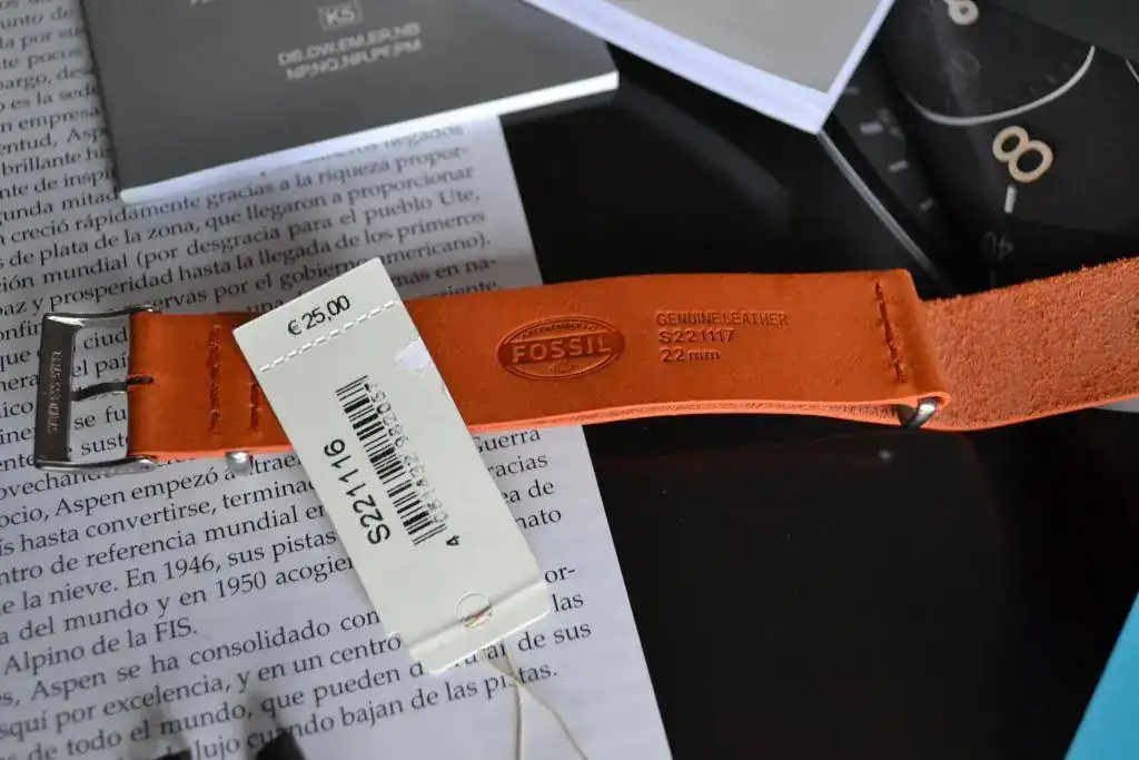 Como detalle, os regalo una correa Nato de piel naranja de la marca Fossil, que esta usada una vez y cuyo PVP son 25€!!!!