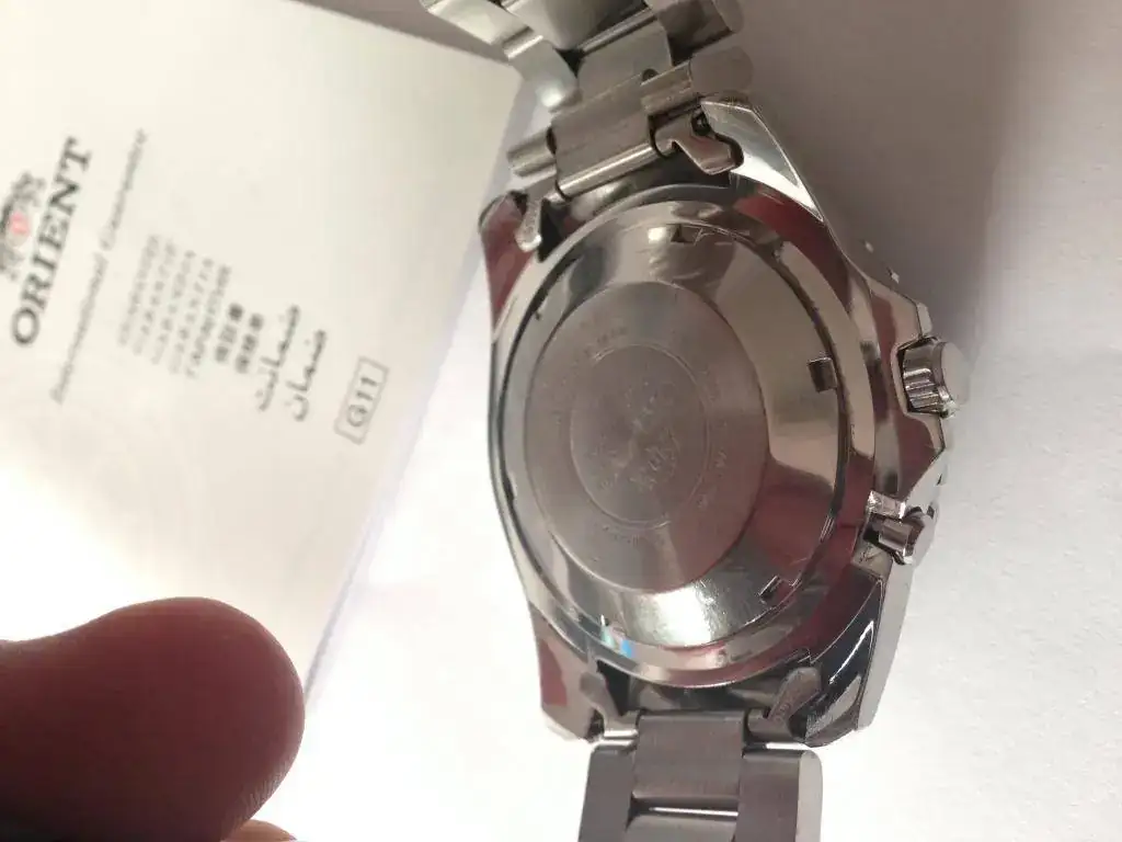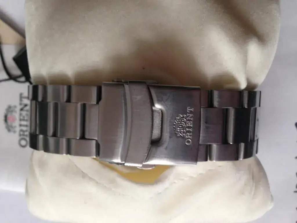 Monta el movimiento propio de Orient 46943 automático sin parada de segundero.