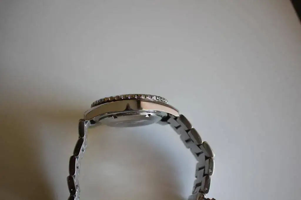Lo tengo ya hace algunos años pero se encuentra en bastante buen estado. Destacar una marca en el bisel entre el 55 y el 60 que no he logrado sacar en las fotos pero que está ahí. Con el teléfono si lo he sacado a contraluz, por lo que a quien este interesado se la puedo enviar por WhatsApp para que la examine. También tiene un pelo en el lateral de la caja en la zona pulida, pero es muy fino y prácticamente no se ve. Fuera de esto no le veo ninguna marca más.