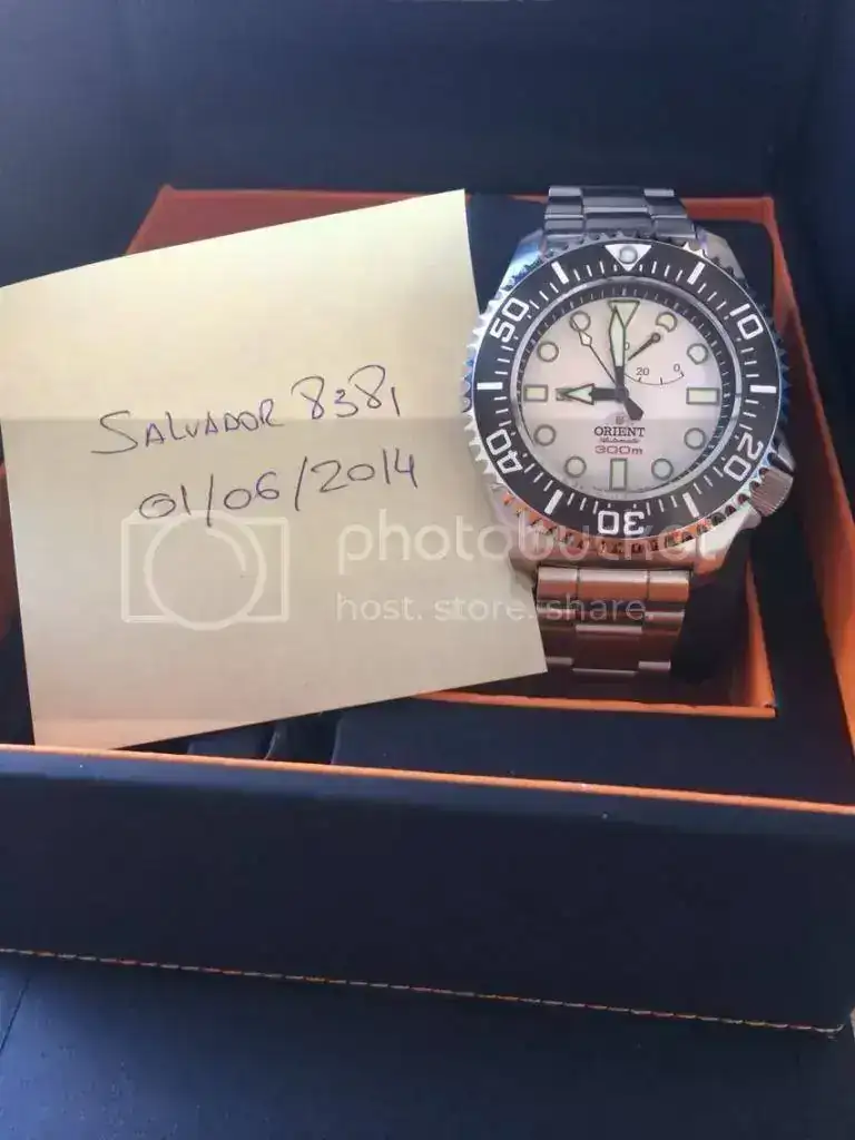 Hola a tod@s saco este precioso diver ya que vamos a caza mayor... se trata de un precioso Orient Pro Saturation Diver 300m el reloj se encuentra en un muy buen estado al 99,5% solo a destacar un pelo inevitable en el cierre....