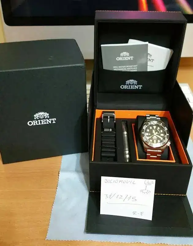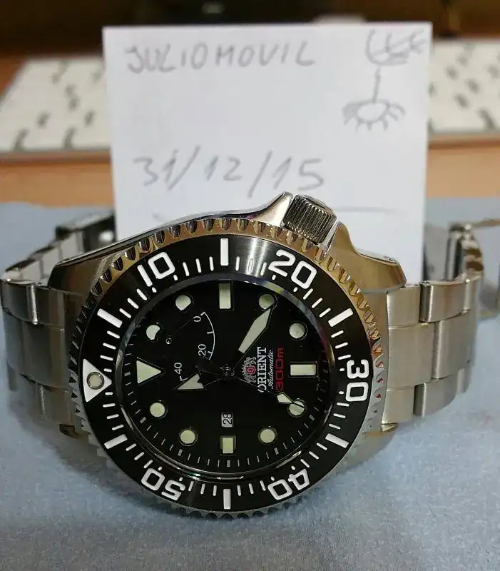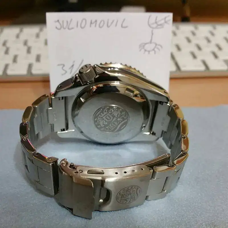 Correa: Brazalete de acero con extension para buceo integrada en el cierre y correa de caucho original Orient