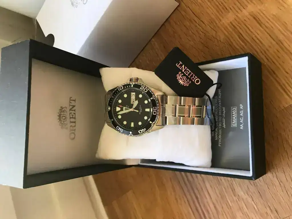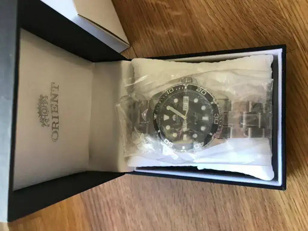 Buenas tardes a todos, abro el hilo para compartir la experiencia de mi primera compra en Massdrop. Ha sido un Orient Ray II para tener un detalle con mi suegro. Ha tardado unas dos semanas en llegar. El envío, embalaje y el reloj perfectos, el precio original bastante bueno (135 USD, al cambio, 124,50 euros). La sorpresa, esperada tras leer (una vez ejecutada la compra) hilos de otros foreros, el sobrecoste de 43.05 euros al recogerlo (24,02 de iva, 15,73 en concepto "despacho" y su iva de 3,30, entregado por Correos). Al final no sé si merece demasiado la pena, considerando que su precio en Amazon es de 200 euros y una posible devolución si surge algún problema es mucho más fácil de realizar en Amazon o algún mercante nacional. A mí se me han quitado un poco las ganas, salvo que la diferencia de precio sea mucho más importante. Con todo, como abrir una caja con un reloj nuevo siempre es estimulante, os dejo unas imágenes. Por cierto, una sorpresa agradable, muy buenos acabados, el armis más que decente y la estética del reloj me gusta. A ver cómo va de ajustado. Gracias por leer y saludos!!! (Y mucho ánimo al compañero del Tudor, espero que recupere su dinero y cojan al miserable de turno)
