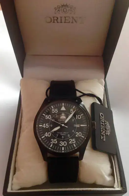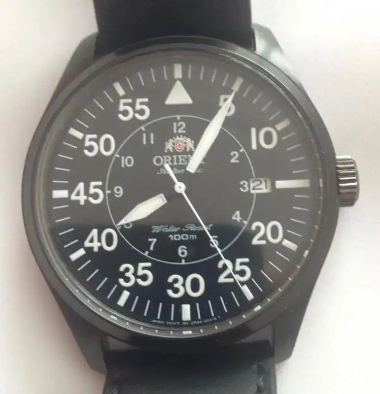 Hola vendo este ORIENT Flieger modelo FER2A001B automático y corona roscada resistente al agua hasta 100 metros esta en excelente estado.