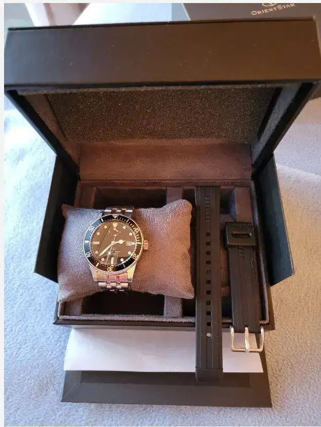 Pero después de tantos divers ¿dónde encontraba ahora uno diferente y de calidad? Pues el caso es, que llevo algunos meses muy metido con la marca Orient Star, y he adquirido un par de relojes que me parecen top. Relojes muy diferentes y de altísimia calidad. No estamos acostumbrados a ver Orient por 2000 € o 3000 € pero los hay. En base a este acercamiento, descubrí el diver 1964, una recreacción del Diver de Orient de la época. En principio, se hicieron dos EL uno negro y otro gris con bisel plateado. Pero luego, salió una segunda edición sin limitar.