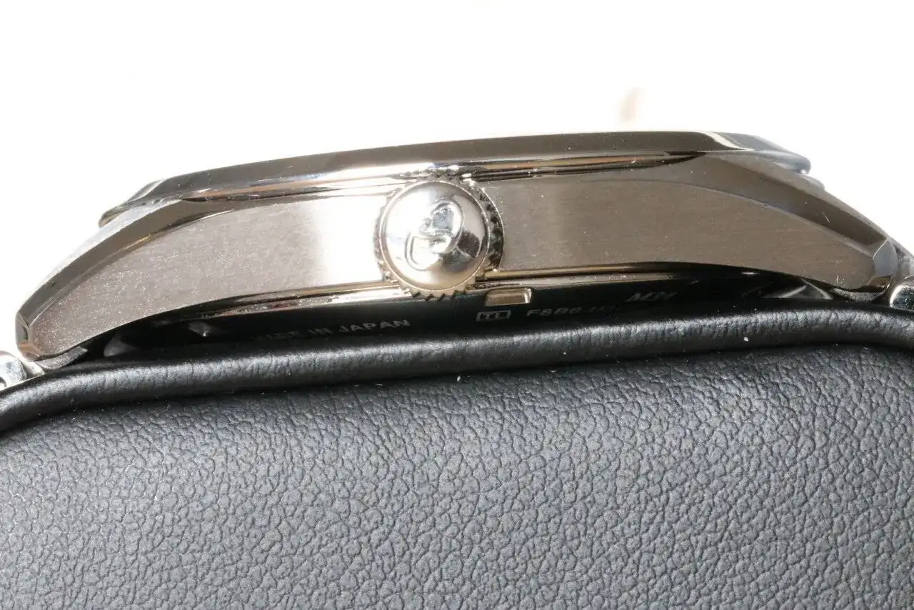Este reloj tiene una caja de acero (SUS316L) de 39 mm, un grosor de 10,8 mm y altura de la caja de unos 46,5 mm. Las caras laterales y superior vienen cepilladas y el cambio de plano y bisel pulido a espejo. La distancia entre asas es de 20 mm.