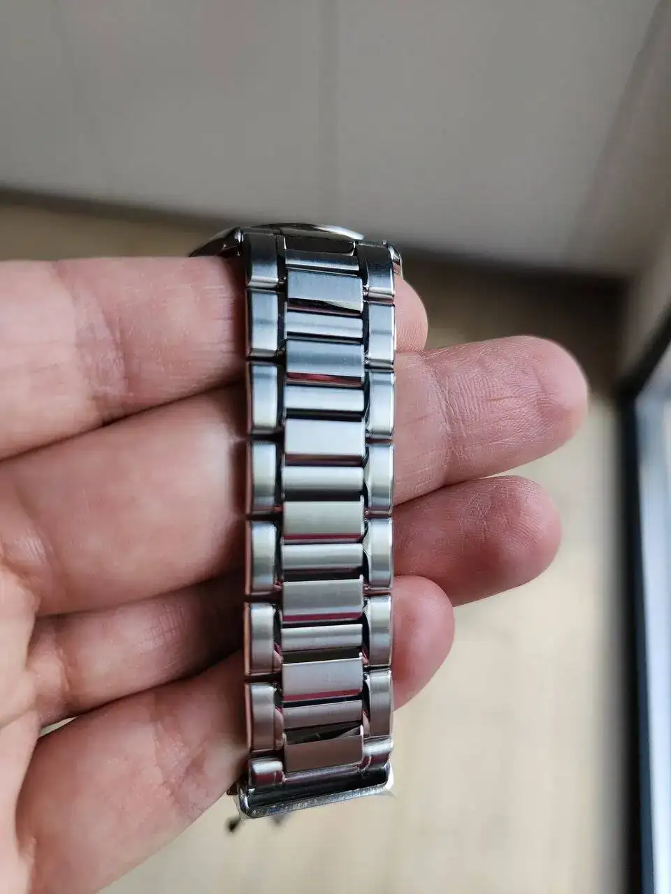 El brazalete de acero tiene partes cepilladas y otras pulidas con eslabones en H de paso corto para mayor comodidad en la muñeca y la verdad es que me gusta mucho, el cierre es similar a los de otros Orient Star. Además al tratarse de la referencia japonesa viene con una correa extra.