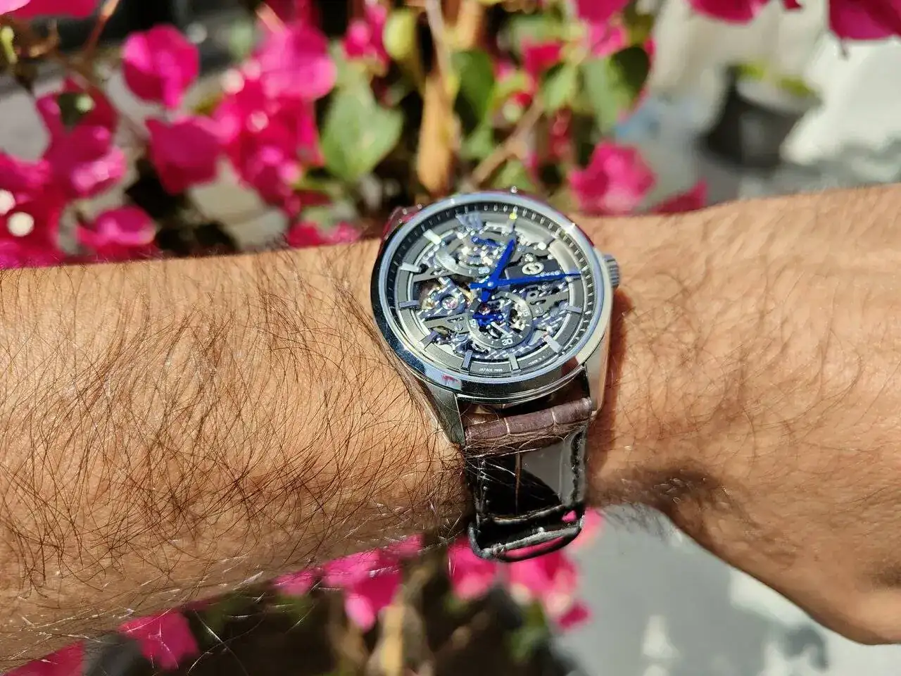 Y hablando de tradición, Orient ha hecho de todo en su dilatada historia, y generalmente muy bien hecho, por ejemplo los esqueleto. Ya el Mon Bijou de los 90 siempre me ha gustado más que muchos otros esqueleto. Me recuerdan mucho a él los hermanos del tuyo más de vestir. Este tuyo, visto al detalle, es un placer por lo trabajado que está y la calidad que se le ve por todos lados. Y el calibre que lleva, un calibrazo ya en un nivel superior de precisión y de calidad, por si fueran poco los movimientos de los Orient Star más habituales.