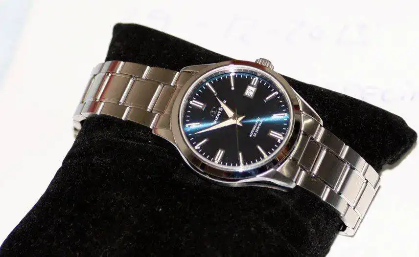 Fue comprado al Mercante Tempo de relojes “Mutter” el 9 de Noviembre pasado, goza de una marcha con atraso de unos 4 segundos diarios, esta impoluto, me lo habré puesto una semana como mucho, un reloj automático de gran calidad y muy elegante, el motivo de la venta: “no se puede tener todo” , no acepto cambios ni rebajas, esta en un estado prácticamente de estreno, el precio 340 euros con envío por correos certificado incluido.
