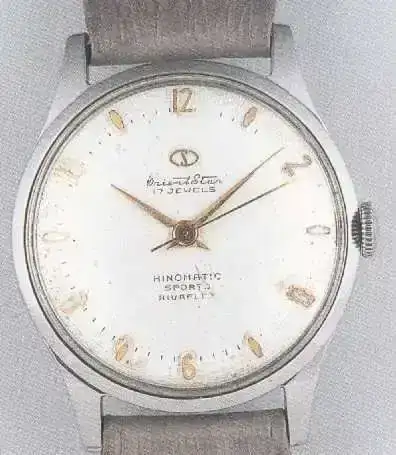 1. En 1955, el Oriente Hinomatic - H, M, segundos centrales.. A pesar del nombre del modelo, parece que este fue realmente un reloj de carga Manual. [Ver 1961]