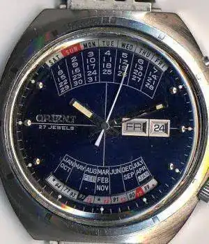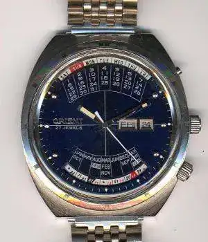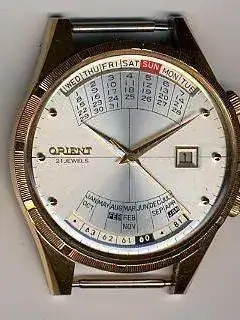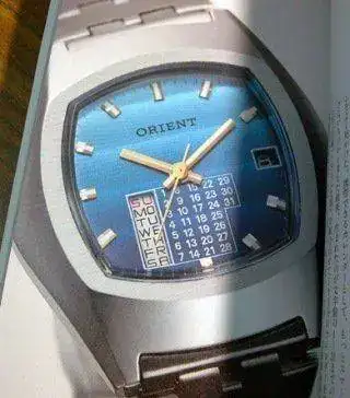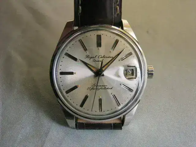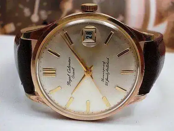 Se introdujo un modelo con visualización de fecha en 1961, Royal Calendar Orient basado en la variante 21j del movimiento real tipo"N"