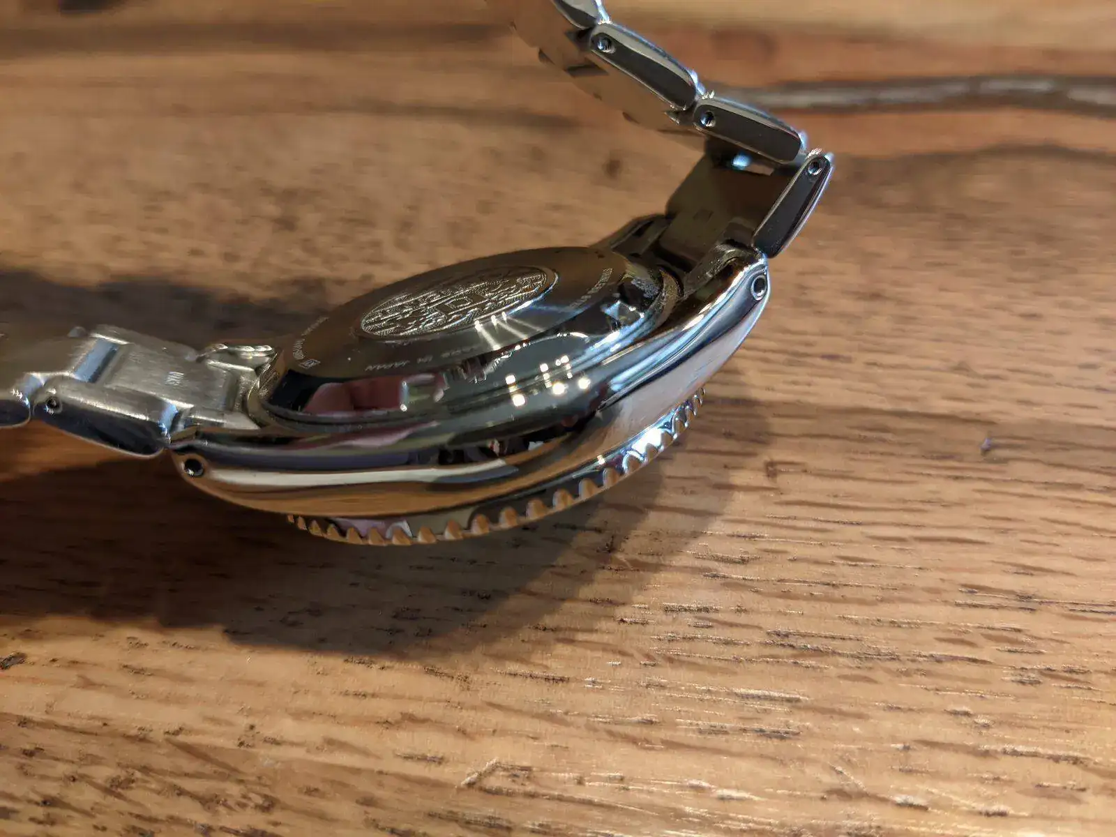 Decir que, cuando hacía poco que lo tenía, me quedé con la corona en la mano. Llamé a Serious watches y amablemente y sin coste alguno, me mandaron una tija + corona nuevas que montó mi relojero aquí en Andorra. Nada reseñable, porque quedó como nuevo, pero mejor comentarlo