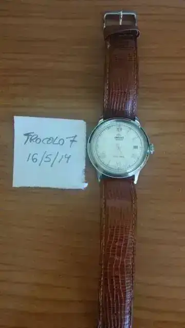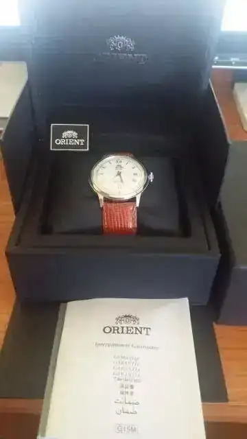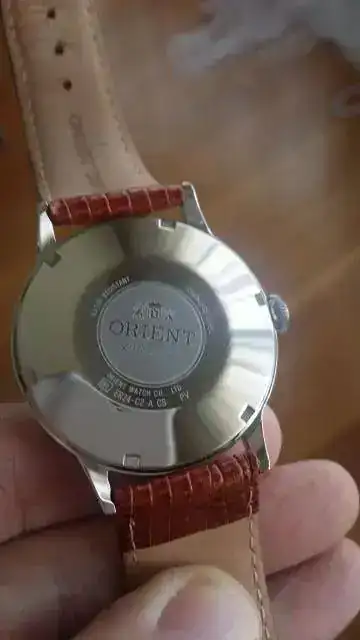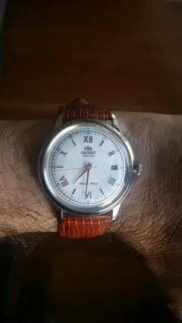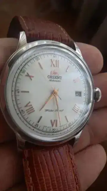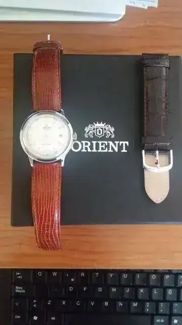 Hola a todos. Vendo mi Orient Vintage de absoluto reestreno. Ni una marca, ni un pelo. Un par de puestas y en casa. Poco tengo que decir respecto a este bonito modelo que no sepáis. Calibre automático Made in Japan, caja de acero inox. de 40,5 mm sin contar corona, cristal mineral, fondo roscado y resistencia al agua de 30 metros, esfera plateada con agujas e índices dorados en números romanos, clásico a más no poder. De marcha va perfecto y la estética, ya lo veis.. exquisita. Lleva unan correa de piel marrón (al 95%) que le da mucha vida al reloj. Trae su caja exterior, interior, garantía sin sellar (el reloj fue comprado el 18/2/14 y adjunto la factura de compra), su correa original de piel sin estrenar y demás zarandajas. El precio que pongo, todo incluido, es de 110 euros. No quiero cambios.