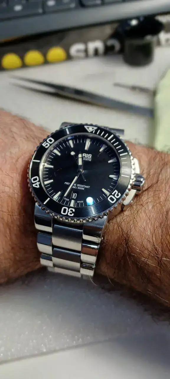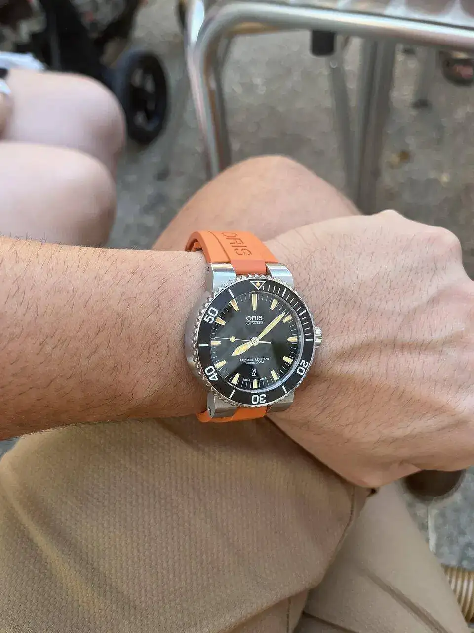 De ambas maneras, con caucho más deportivo y cómodo, con brazalete más formal y aparente… yo mi Oris lo llevo con cauchoHola compañeros. Esta mañana me apetecía ponerle la correa de acero al aquis, siempre es más entretenido que con otros relojes, ya que al ir atornillado requiere un poco más de tiempo.