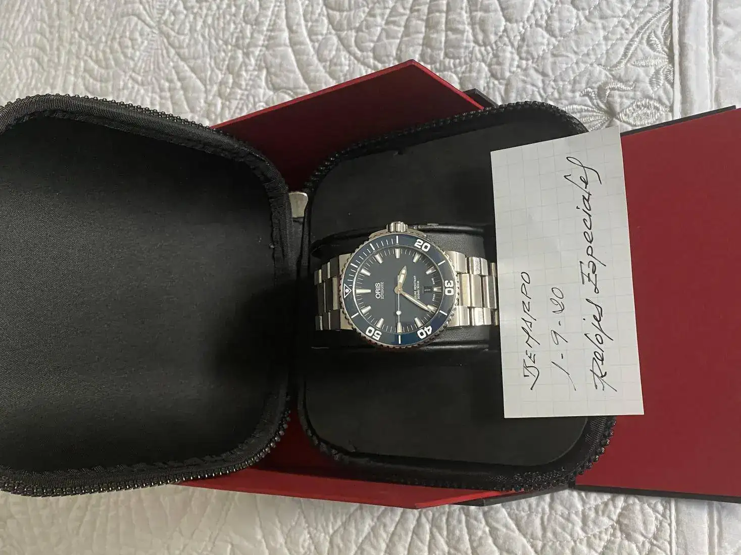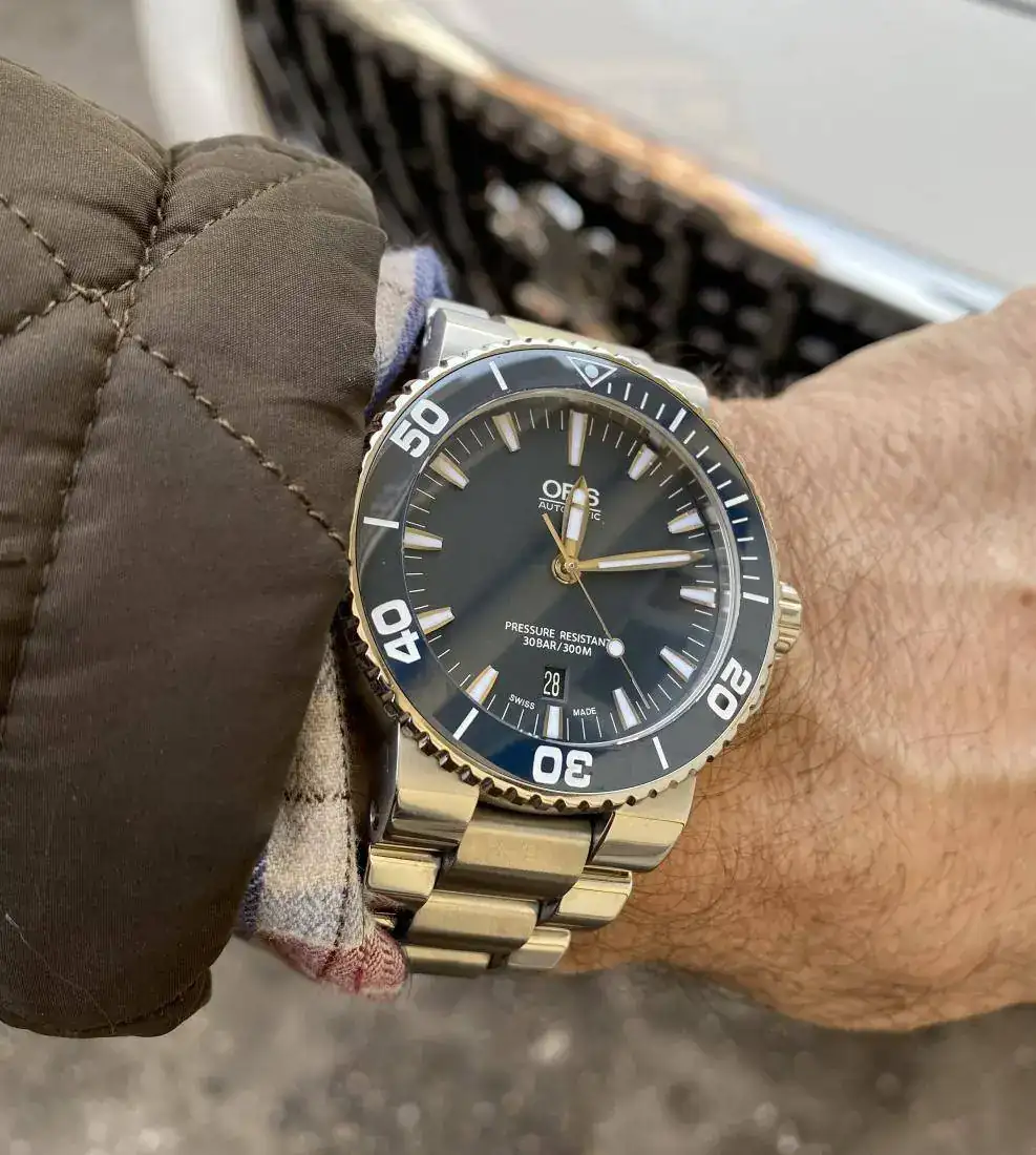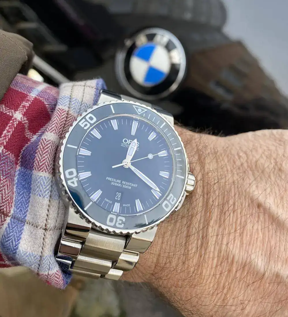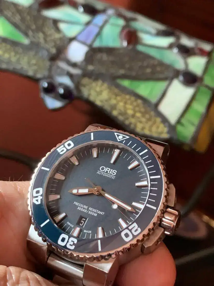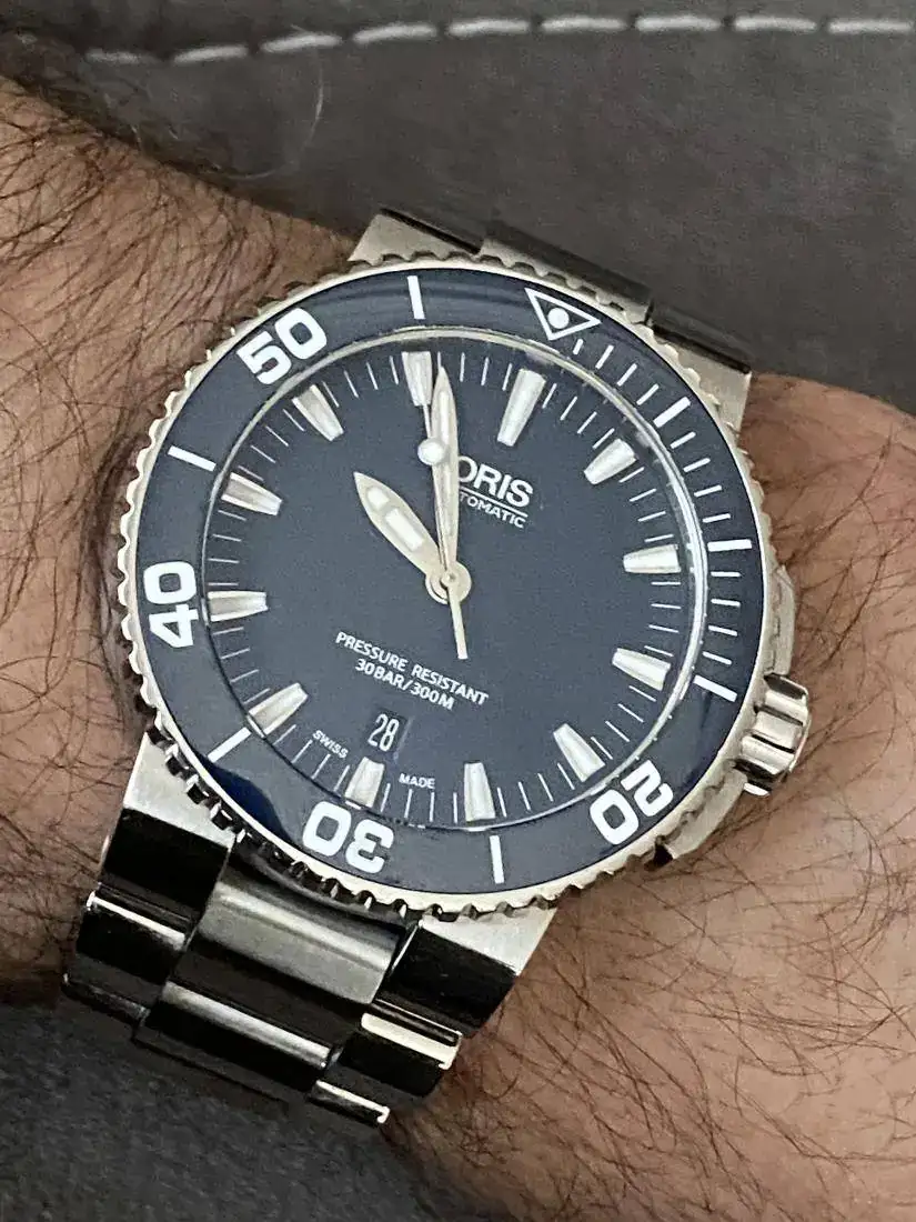 Con el fin de ir quitándome relojes y aligerar poco a poco mi caja, pongo a la venta mi Oris Aquis de color azul en muy buen estado porque apenas lo he usado, con dotación completa (full set) caja, tarjeta sellada y libreto.
