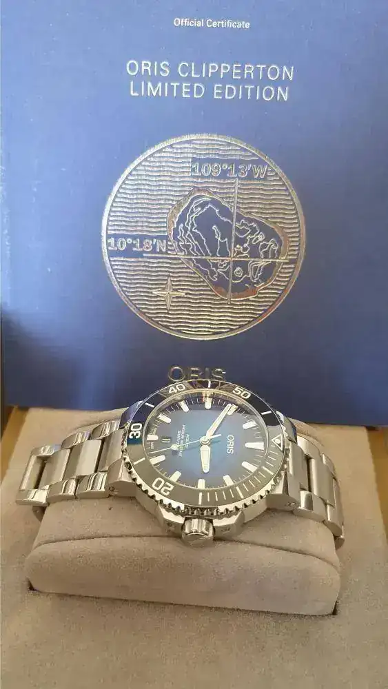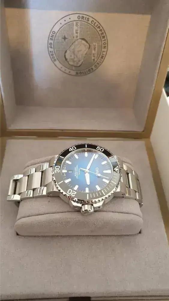 Pongo a la venta este espectacular Oris AquisClipperton Edición Limitada a 1200 uds. Comprado por mi en mayo de 2020, portanto tiene my poco uso porque no ha salido de casa prácticamente. Muy buenestado, solo marcas en el cierre por apoyarlo en la mesa ante elordenador. Tiene degradado azul en la esfera espectacular, para mi es el Aquismás bonito (por eso lo compré).