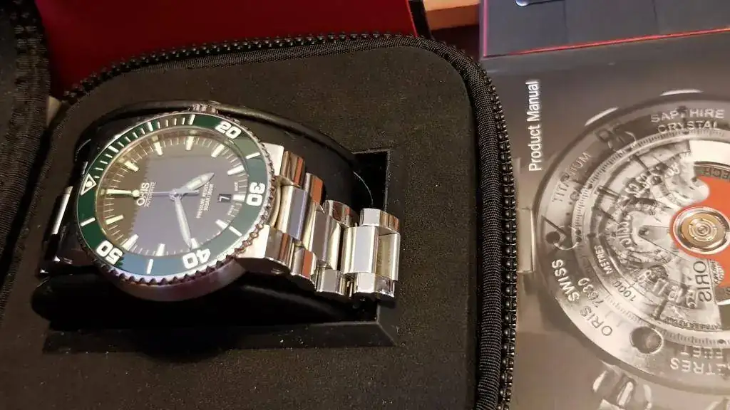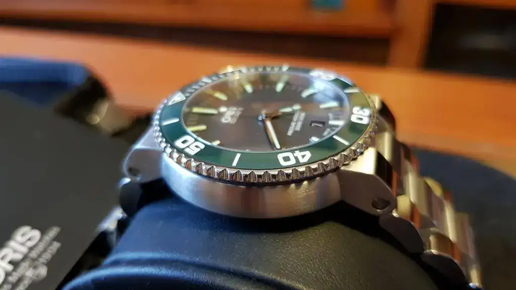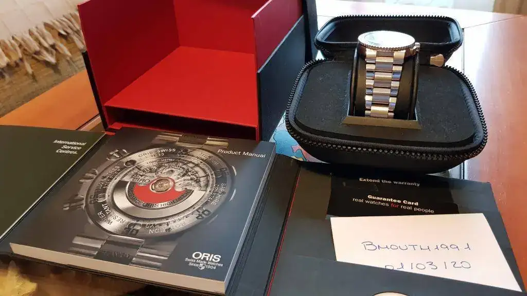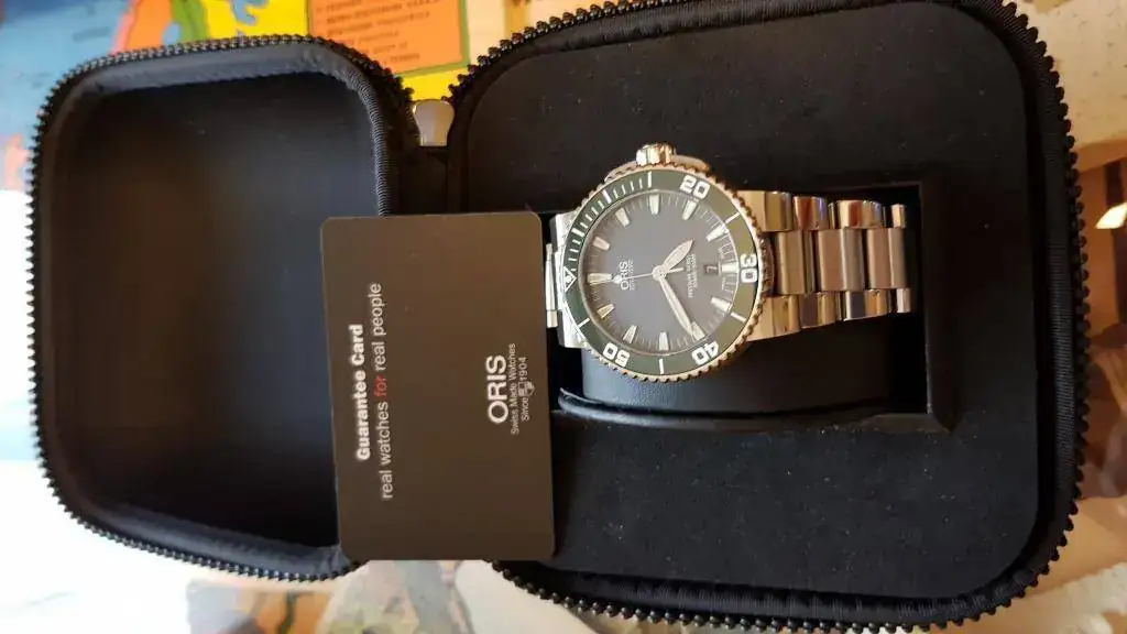 Pongo a la venta mi Oris Aquis Date cerámico. El estado general es bueno, con poco uso y he sido el único propietario. El estado de marcha es muy bueno y no tiene más que algún pelillo mínimo en armis y cierre. Quienes me conocen saben que mimo los relojes y los roto regularmente. Con dotación completa (full set): caja, tarjeta de garantía sellada de CO nacional y libreto. Lo pongo a la venta a un precio muy razonable de 850 eur y no acepto cambios, dado que estoy reduciendo caja.