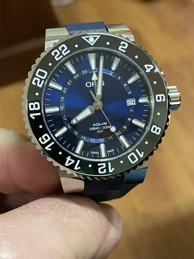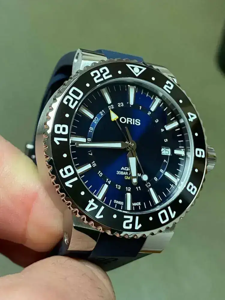 Bunas tardes a todos, pongo a la venta este precioso Oris Aquis date GMT de absoluto reestreno, ya que ha sido adquirido por mi hace apenas 25 días en CO oficial español. Tiene un día azul precioso y como es lógico tiene toda su dotación. El reloj tiene un PVP de 2.450 euros y se vende por tan solo 1.490 euros con envío incluido a la península por MRW, creo que es un gran precio para un reloj que es prácticamente nuevo.