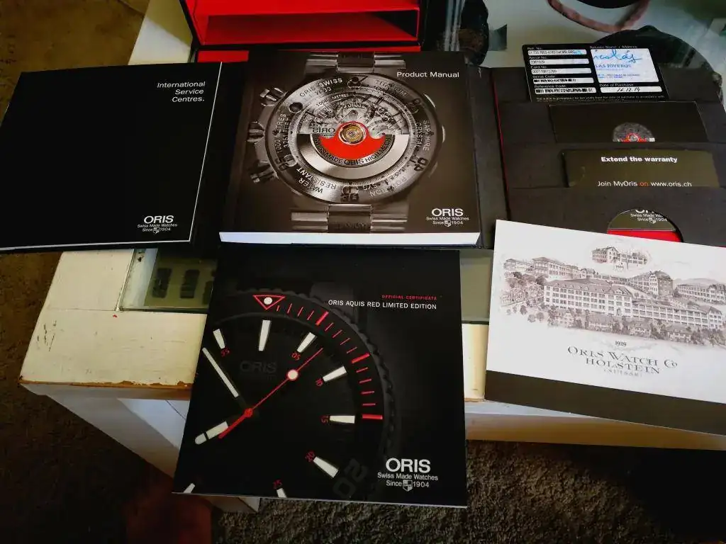 Tiene todo lo que tiene que tener menos la factura, la garantía es de 16,12,2014 y según el anterior dueño esta registrado en Oris el tercer año.De marcha va muy bien, pero lo he usado poco, en cualquier caso se vende con sistema cabanillas.