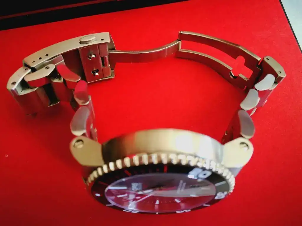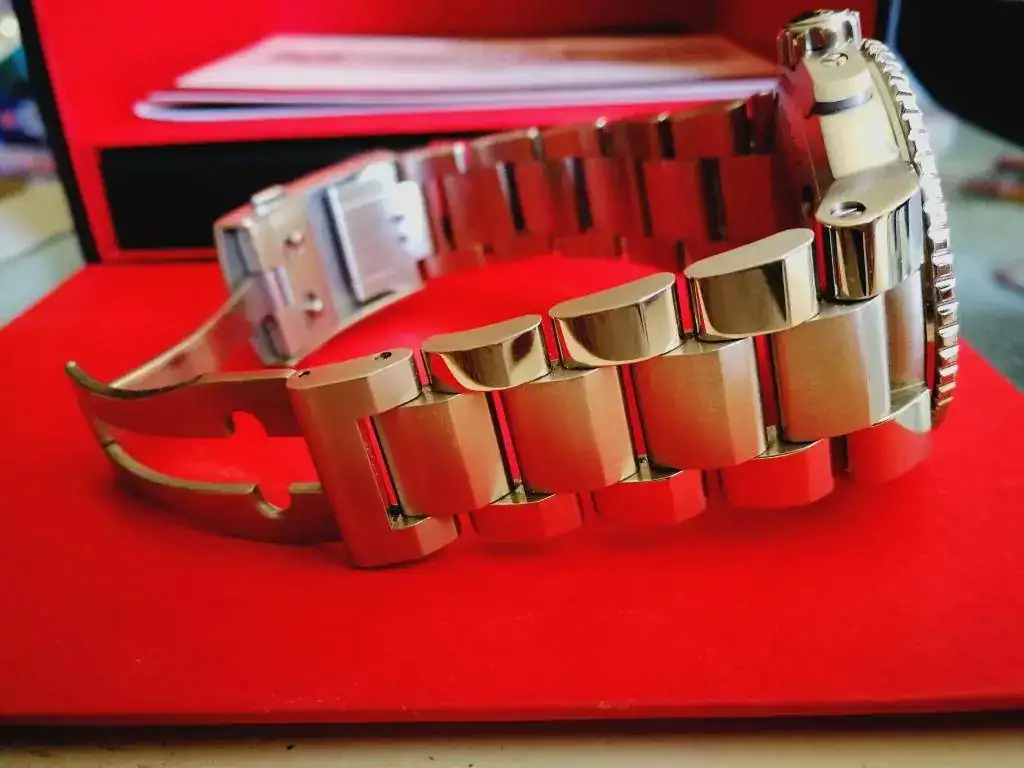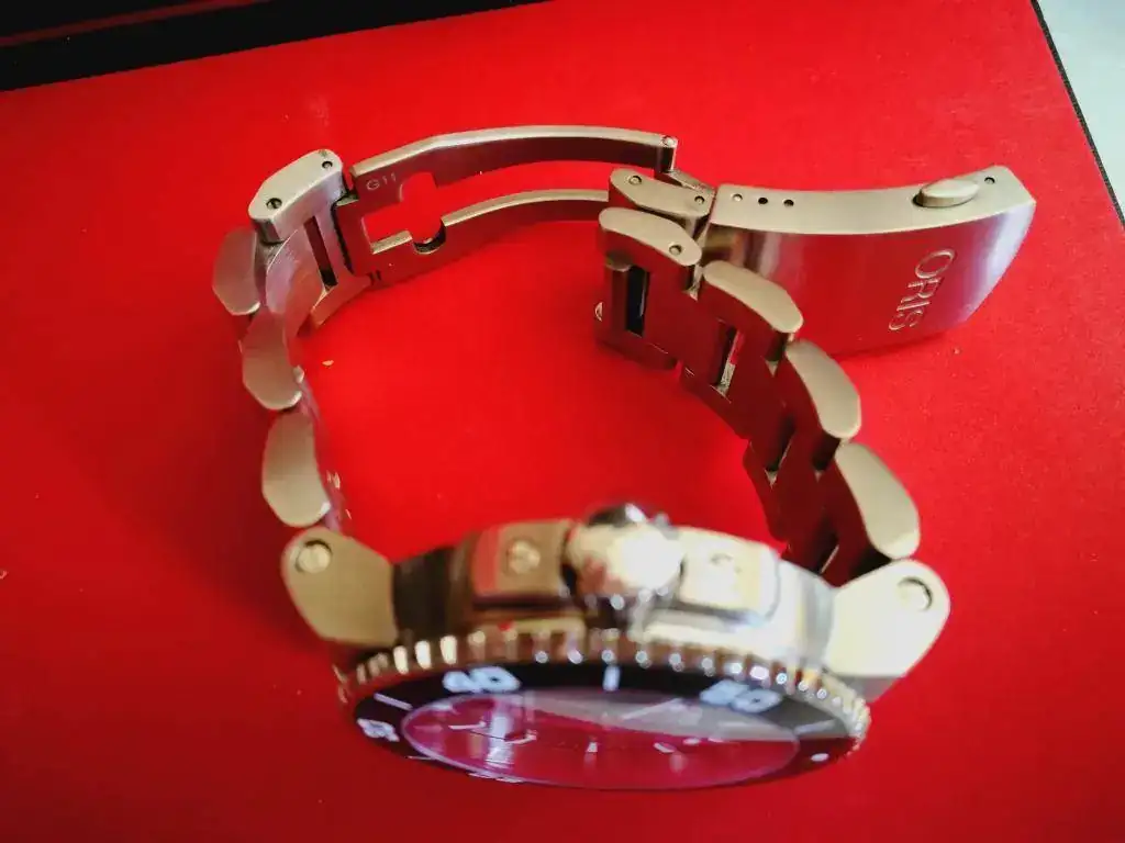 Esta en muy buen estado a simple vista pasa por nuevo pero tiene miniarañazos en armis y cierre, hay que verlos de cerca y fijándote, pero están. En la caja bisel y cristal no le veo nada.