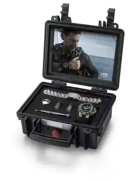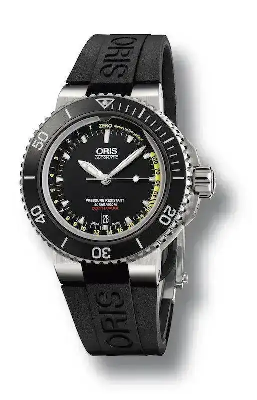 Fiel a la herencia de 110 años de la compañía, la solución de Oris de desarrollar un reloj mecánico con profundímetro resultaba pragmática, con una apertura en el cristal a las 12 horas. Bajo este se encontraba un canal acotado que recorría el contorno de la esfera. La apertura permitía al agua acceder al canal, creando una marca de agua que correspondía a las indicaciones del profundímetro en amarillo señaladas en el cristal, ofreciendo al buzo una lectura de la profundidad a 100 metros. Las juntas entre el cristal y la caja significaban que el reloj era aún hermético hasta 50 bar (500 metros).