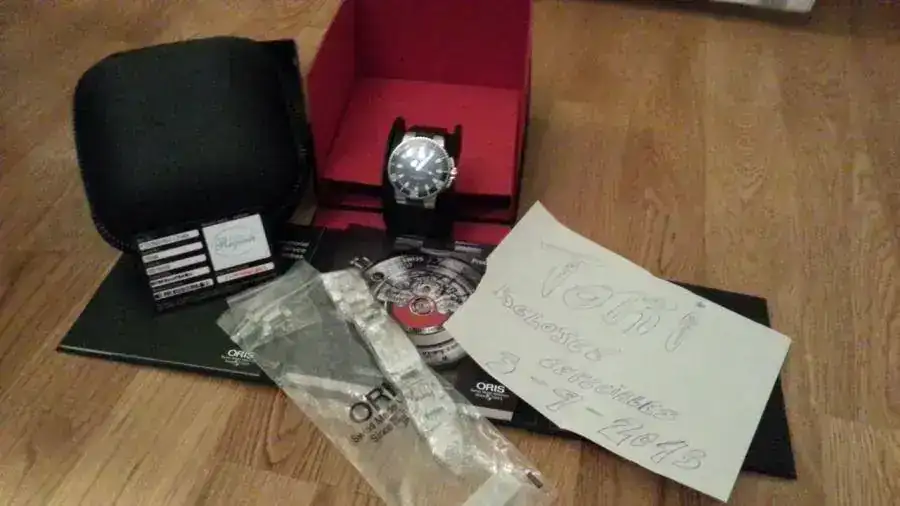 Se trata de un Oris Aquis Ceramico Azul , la verdad que el color es precioso , en las fotos no creo que se note pero gana en vivo , el reloj es de Noviembre de 2012 , así que aún tiene muchiiiiisima garantía por delante , lo compre nuevo y la verdad que quien lo compre lo medio estrena , solo tiene un pelillo en un lateral , que ni se como habrá llegado hasta ahí , pero por lo demás esta impoluto , como digo tiene toda su dotación completa con toda esa garantía ya citada y este modelo tiene armis y caucho originales claro ( el caucho lo compre posteriormente así que tendrá un mes escaso y es el modelo que no necesita cortarse para adaptarse a la muñeca , una pasada ) para este modelo no puedo aceptar cambios y el reloj se vende con toda la dotación completa , es decir...no vendo ni el caucho ni el armis por separado . El precio que le pongo al conjunto de este reloj con armis y caucho es de 950€ envío incluido , dando prioridad en la entrega en mano en Madrid , el PVP de este reloj con armis es de 1440€ sumandole los casi 200€ del caucho supone un ahorro importante , ahora unos detalles del reloj y despues las fotos!!(no demasiado buenas sorry )