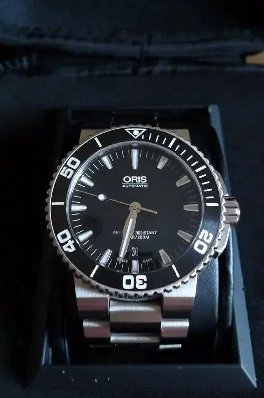 En venta ORIS AQUIS DIVER DATE CON BISEL CERAMICO Y BRAZALETE DE ACERO y Esfera Negra.