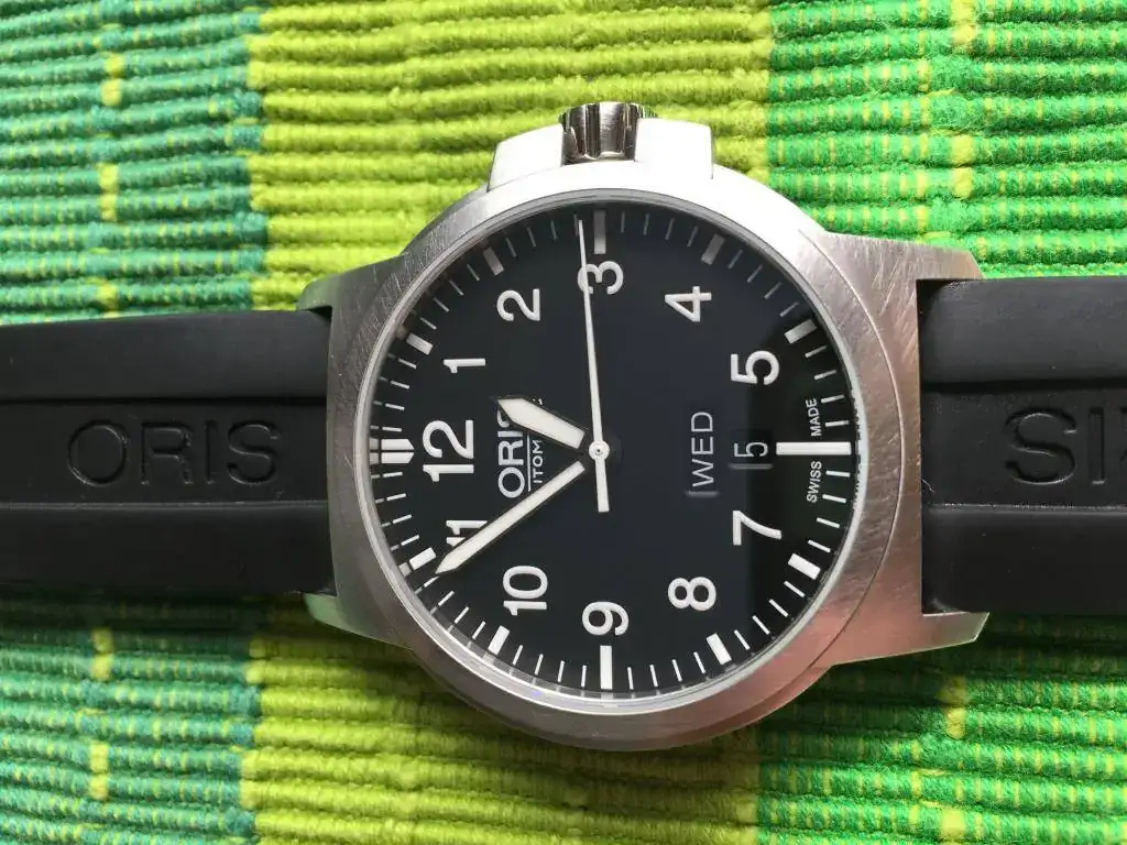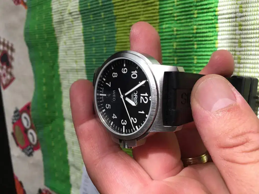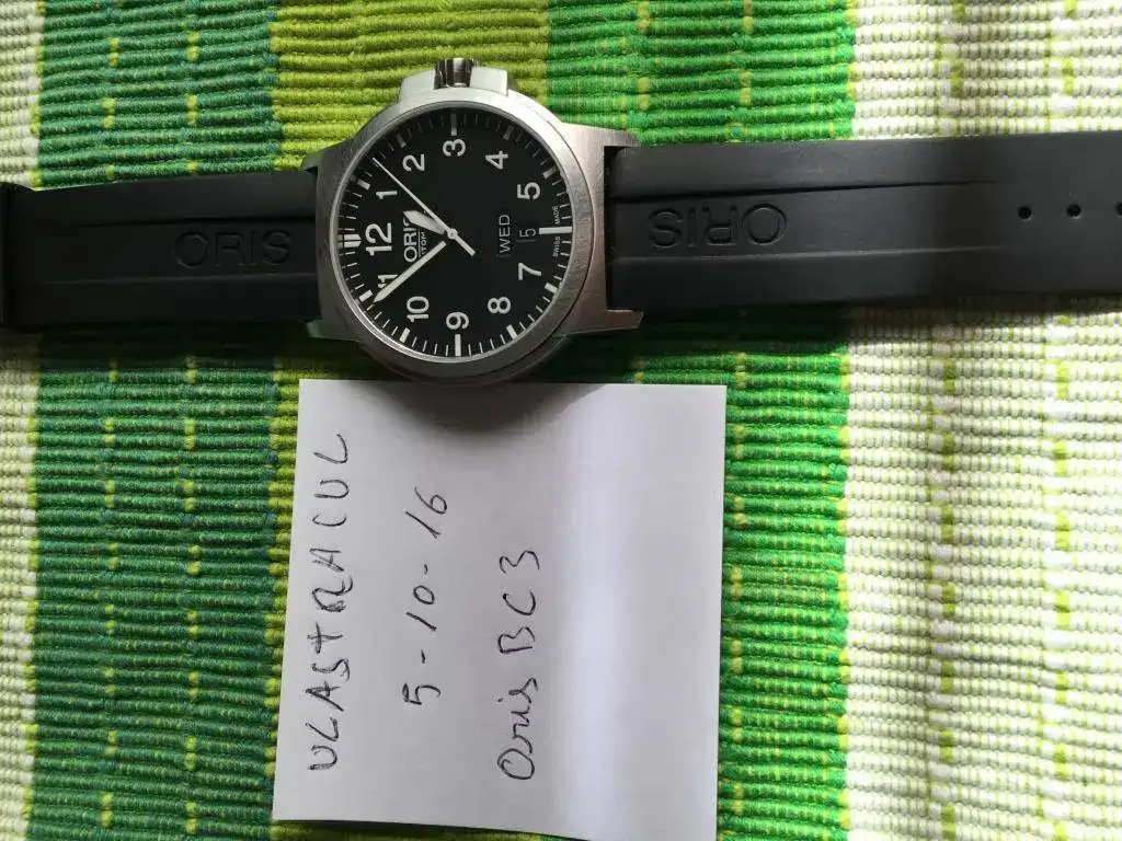 Buenos días saco a la venta este flieger de Oris,el reloj tiene muchos microarañazos(ninguno profundo)y ningún golpe.El reloj está en garantía hasta 2018 y si lo registras en "My Oris"tienes 12 meses más de garantía(hasta 2019).El reloj de marcha va genial,lleva montado su caucho de serie(usado pero sin rajas ni grietas),por supuesto que va con toda su dotación de fabrica y tarjeta de garantía sellada y fechada por concesionario oficial Oris.En principio busco venta,pero si alguien está interesado en cambiarlo sería preferiblemente por Diver automáticos en similar estado al mío,bueno...ahora las fotos,un cordial saludo y gracias al foro por ceder el espacio.