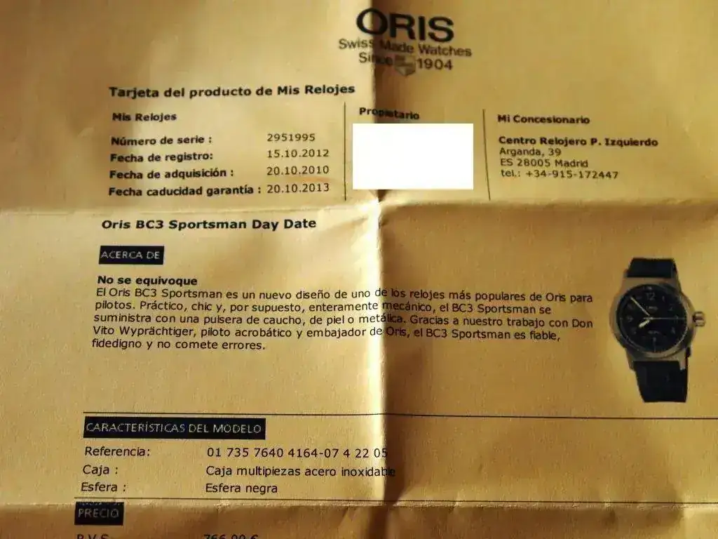 Buenas a todos, saco a la venta este ORIS BC3 SPORTSMAN, ya