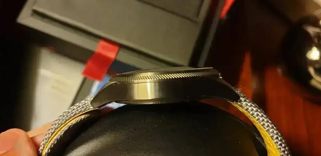 Calibre automático de base Sellita, con 38 horas de reserva de marcha. Corona roscada muy fácil de maniobrar. 100m de resistencia al agua.