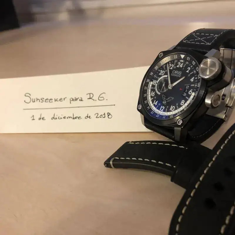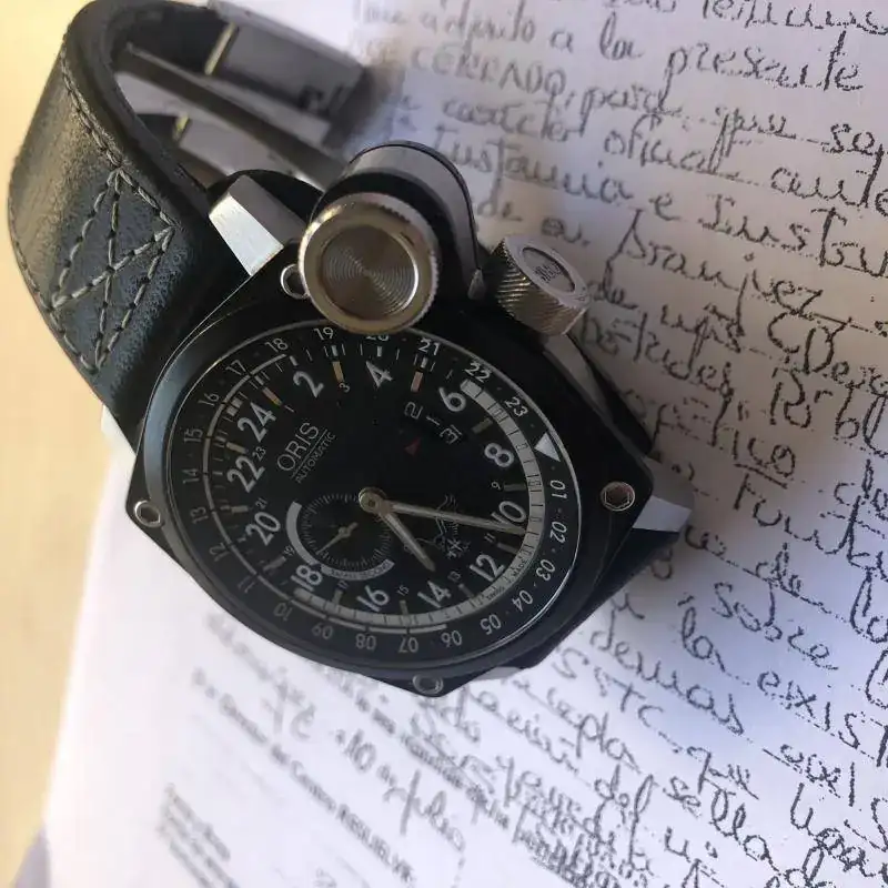 Es un reloj muy especial, único veinticuatro horas de Oris, con unos acabados de primer nivel y en un estado muy bueno: sin señales ni pelos, el zafiro está impoluto y la caja también.