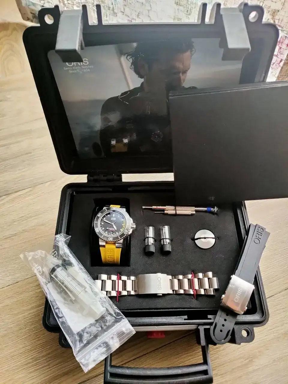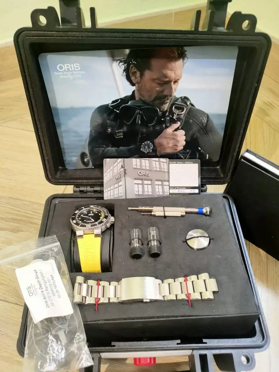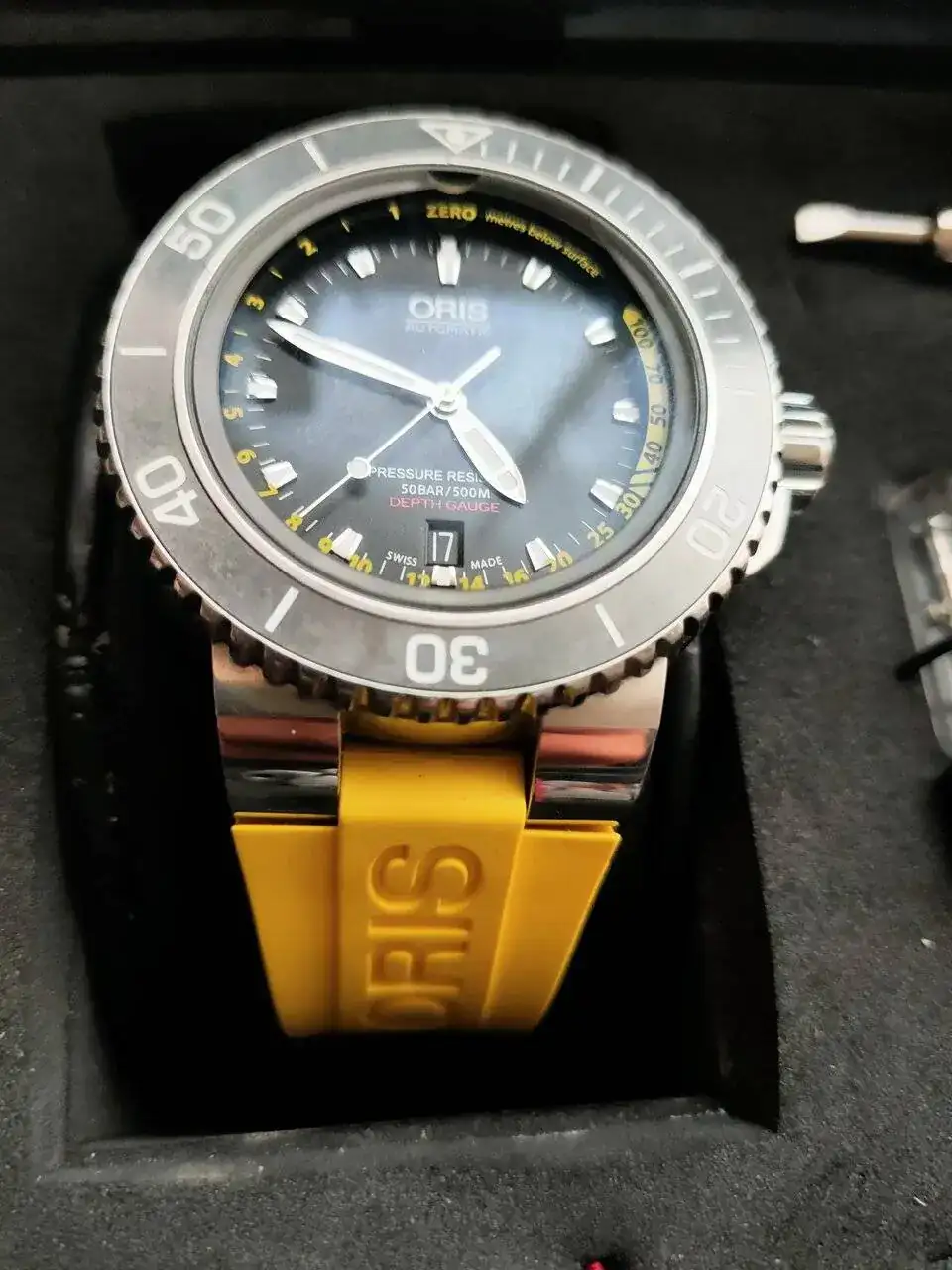 Muy a mi pesar y solo por problemas familiares y necesidad económica vendo este reloj herramienta Oris Depth gauge del año 2016 con su característico medidor de profundidad basado en la ley de Boyle-Mariotte. la verdad que en mi opinión es un relojazo con un a calidad contrastada.