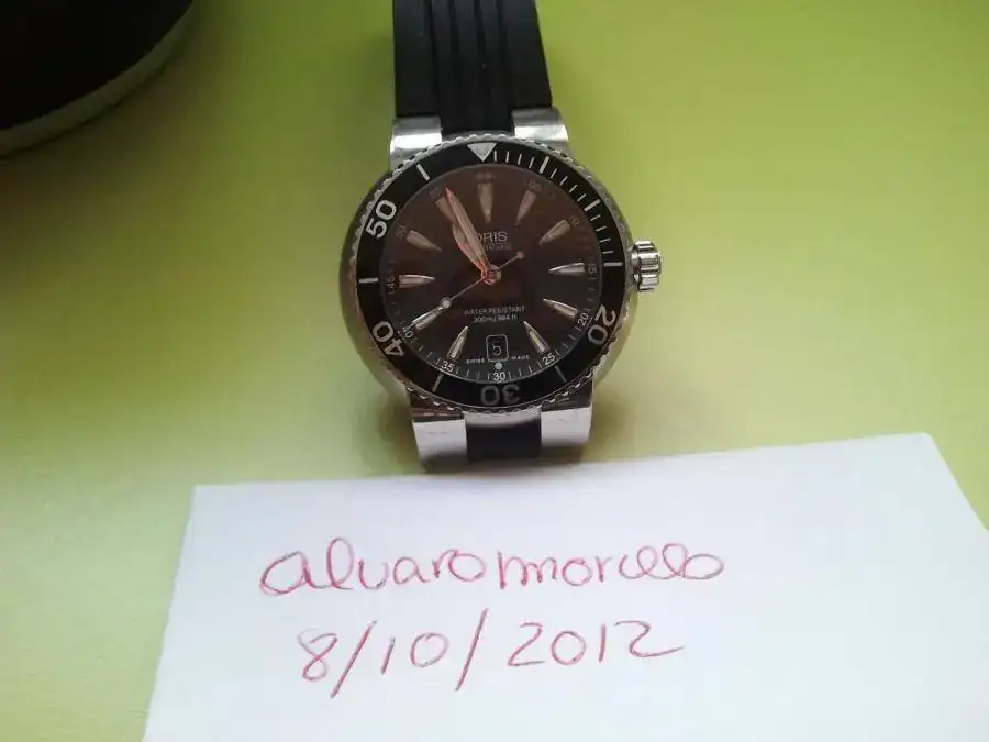 Hola,buenas pues eso que vendo este precioso oris diver´s date de color negro con correa de caucho, y de regalo correa de piel negra vuelta hecha a mano por Jacobo Straps con buble cepillado, el reloj esta en muy buen estado y tiene toda su documentación y cajas ademas de un año mas de garantía. lo unico que quiero reseñar es que la correa de caucho esta cortada para una muñeca de 16,5cm. el precio que le pongo a este bonito y contundente diver es de 450 euros+ envio MRW.