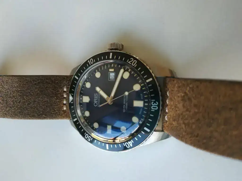 Vendo reloj Oris Diver Sixty-Five con esfera de color azul, de 42 mm de diámetro, con un año de antigüedad, poquísimo uso, sin ningún defecto (como si fuera nuevo a estrenar) y dos años de garantía por delante. El reloj va con las siguientes correas: