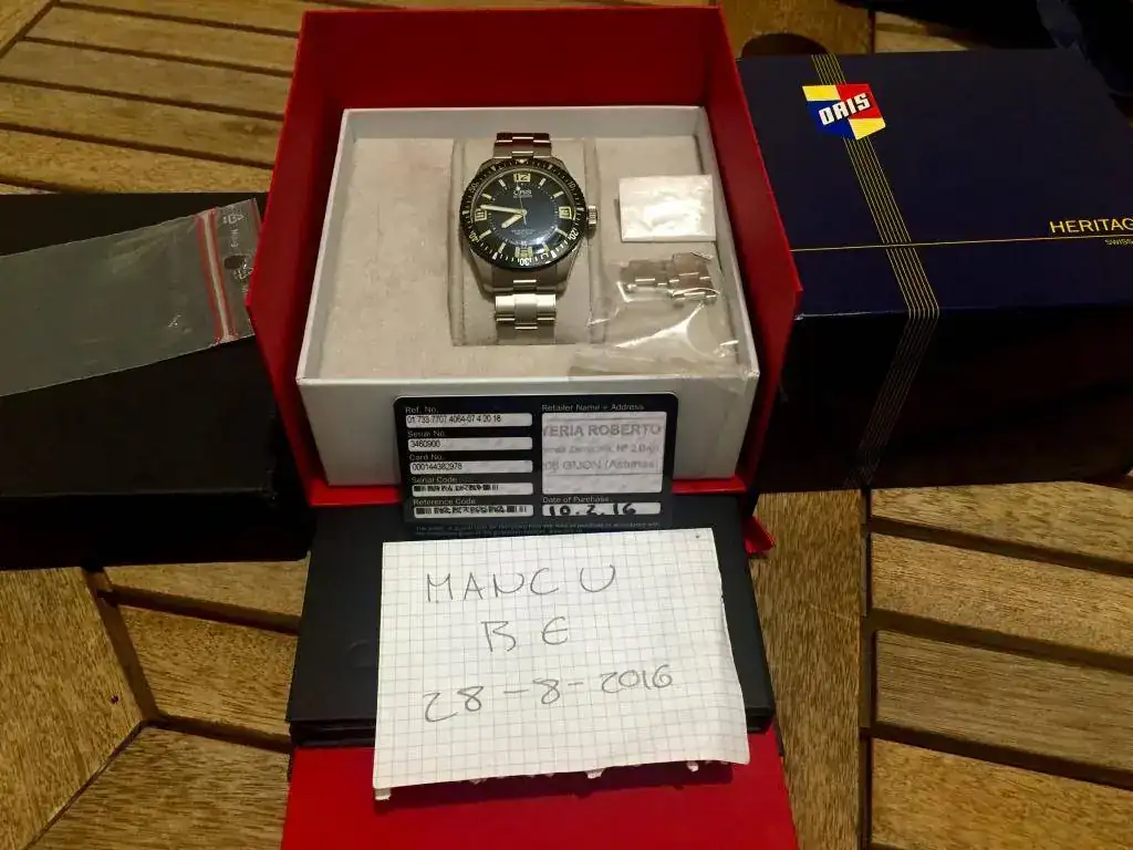 El reloj está estupendo , tiene garantía oficial Oris vigente y viene con el set completo. A reseñar alguna inevitable marca en el cierre del armis y el Pulido a espejo de la tapa del reloj ( no se ve ,salvó que te quites el reloj ). Cosas propias de un reloj usado con mimo , pero usado.