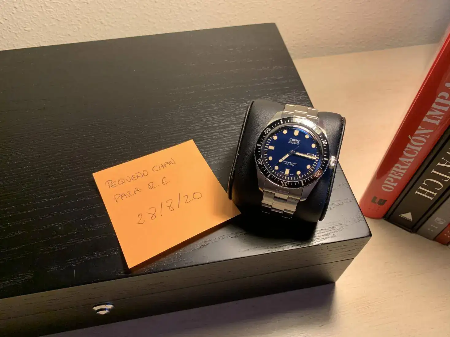 Sigo haciendo hueco. Le toca el turno a mi Oris Diver's 65. Es la versión de 42mm, con bisel negro y esfera azul.