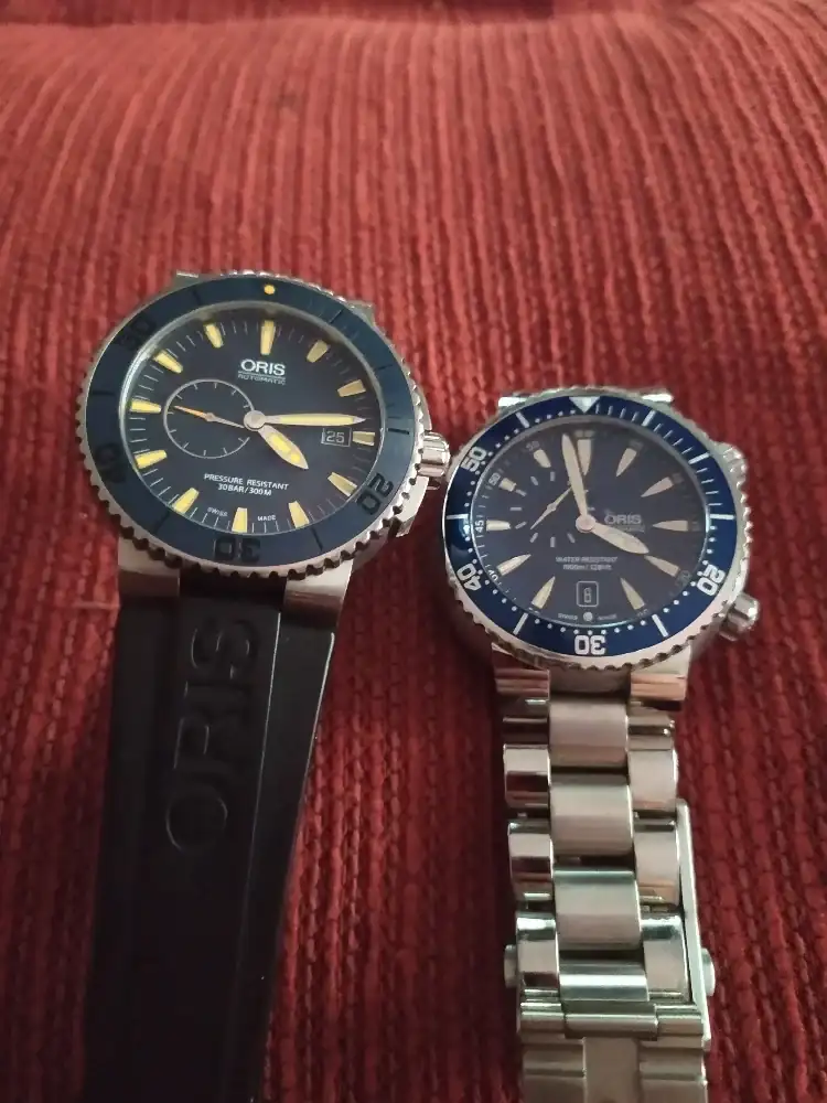 El Oris Aquis, si no me equivoco y corrígeme si es así, sigue siendo un Diver más o menos contundente y alto de caja. Personalmente nunca usaría un Diver para "vestir", no lo veo combinando con un traje... debo ser raro