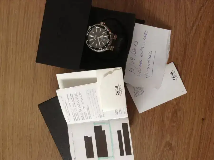 Buenas compañer@s, saco a la venta este oris diver del 2007, el estado es bueno, el deplo tiene sus marcas de uso y la caja esta perfectamente, solo reseñar q a la altura de las 11 tiene 2 microrayaditas en el bisel q se ven solo al tras luz, he intentado sacarlas pero con el ipad no se si se notaran, son muy pequeñas, el caucho esta cortado para muñecas de 17,5, la caja es la anterios a la escafandra esta perfecta y la garantia esta sellada pero caducada.el precio para este reloj es de 480€ envio por mensajeria sin asegurar a mi cargo, y tambien uso el metodo Cabanillas, si lo que te envio no es lo que te he ofrecido me lo devuelves y te ingreso el dinero.