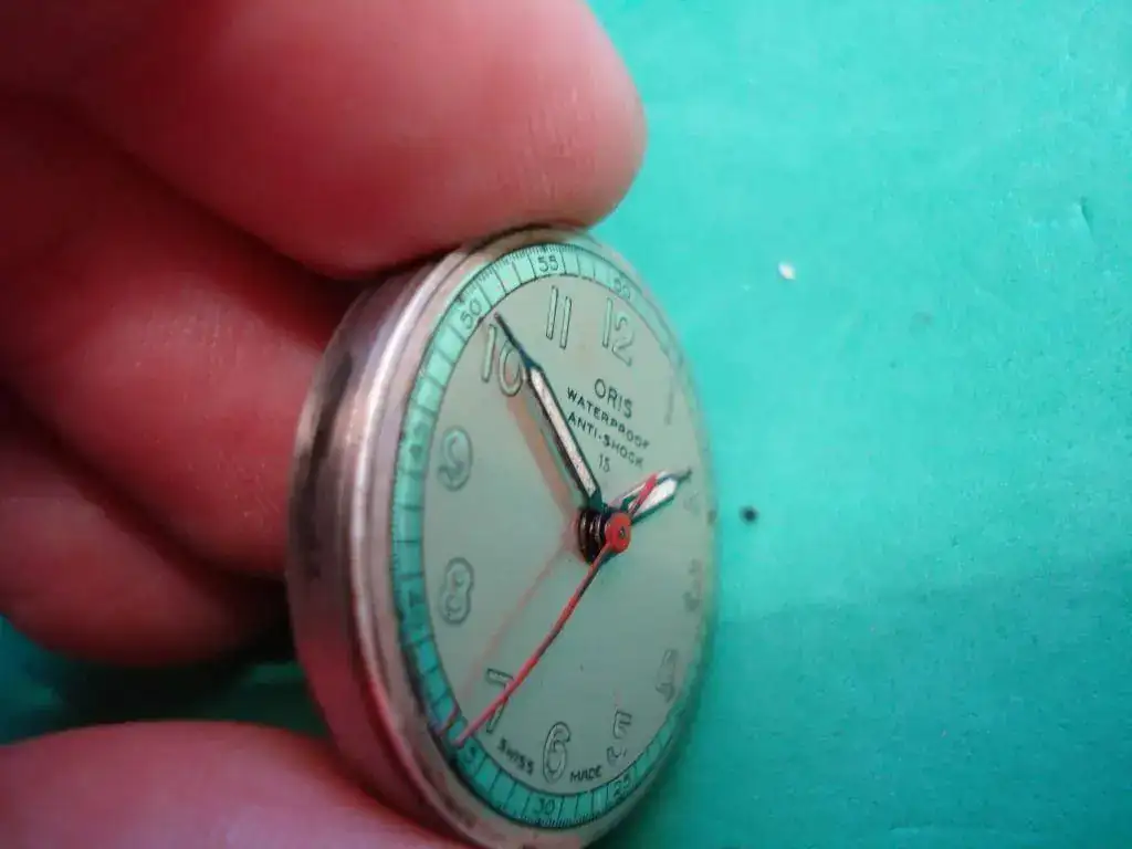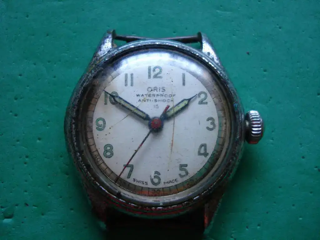 La corona es un "cebollón".... Por alguna parte he leído que en los 40', que debe ser la época de este reloj, la Oris fabricó relojes para pilotos con una corona grande para que fueran más fáciles de manipular con guantes... Será este un ejemplar de pilotos ???