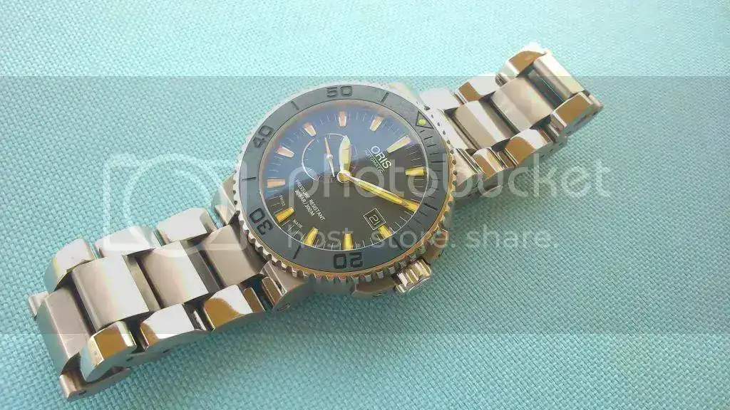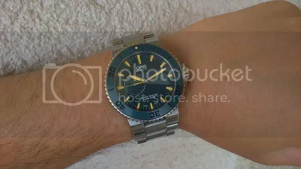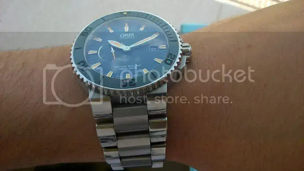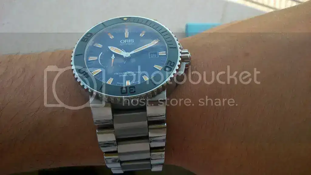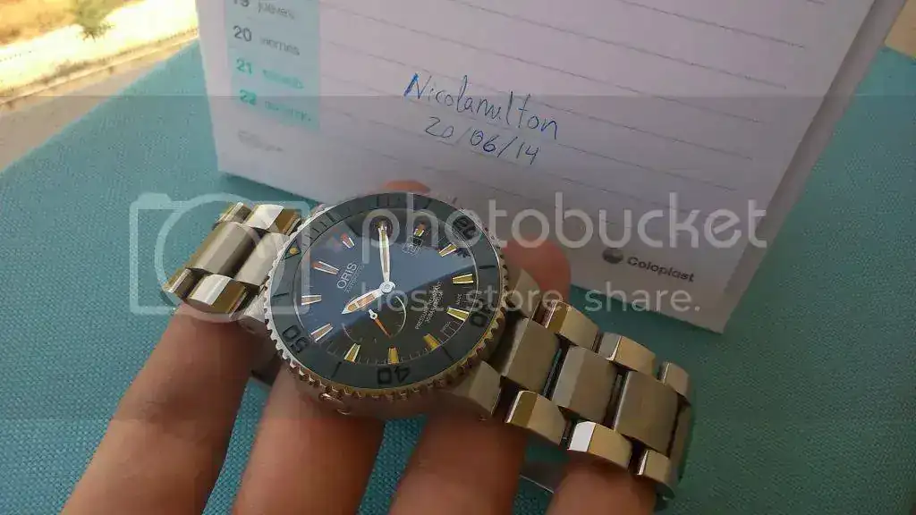 Tiene justo un año, por lo que le quedan dos de garantía al registrarlo en MyOris. Incluye todas las cajas, papeles sellados en relojería nacional y todos los eslabones. El estado es casi como nuevo, ligeros pelillos en el cierre. Si el bisel se ve con pequeñas manchas es por haberlo lavado esta mañana y no haberle pasado un trapo luego (es del agua, con el dedo se le ha ido)