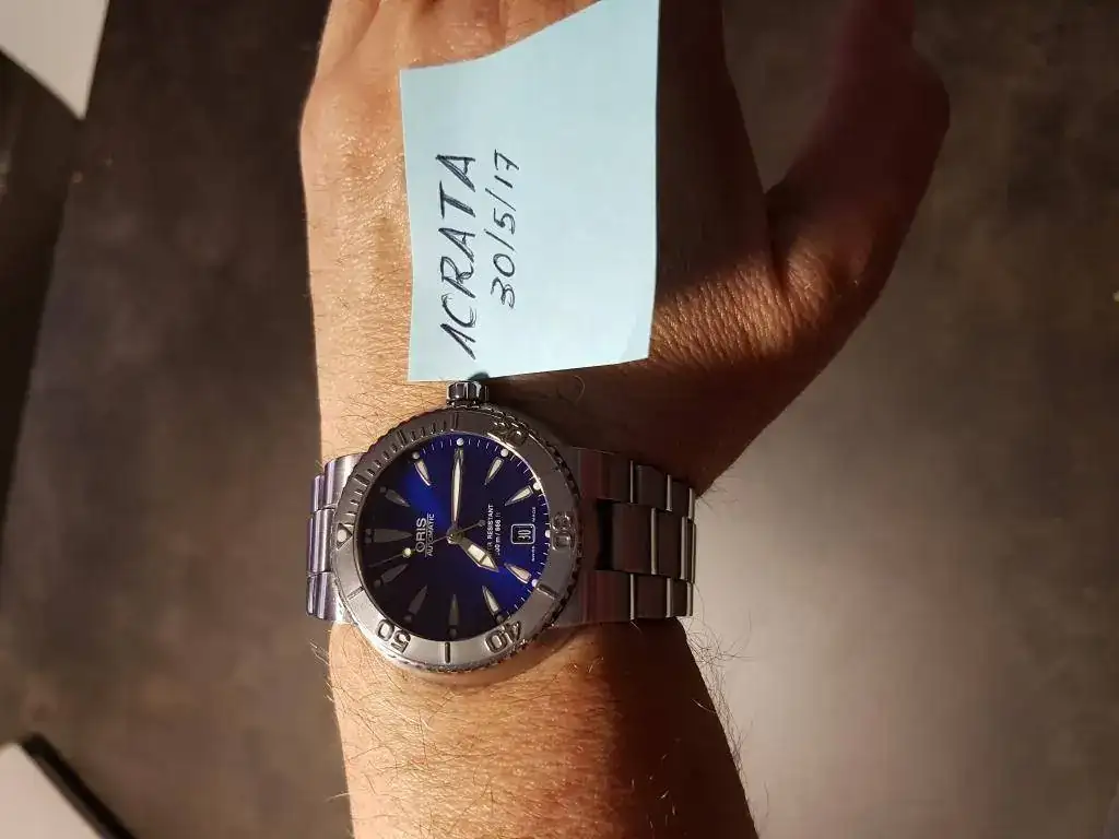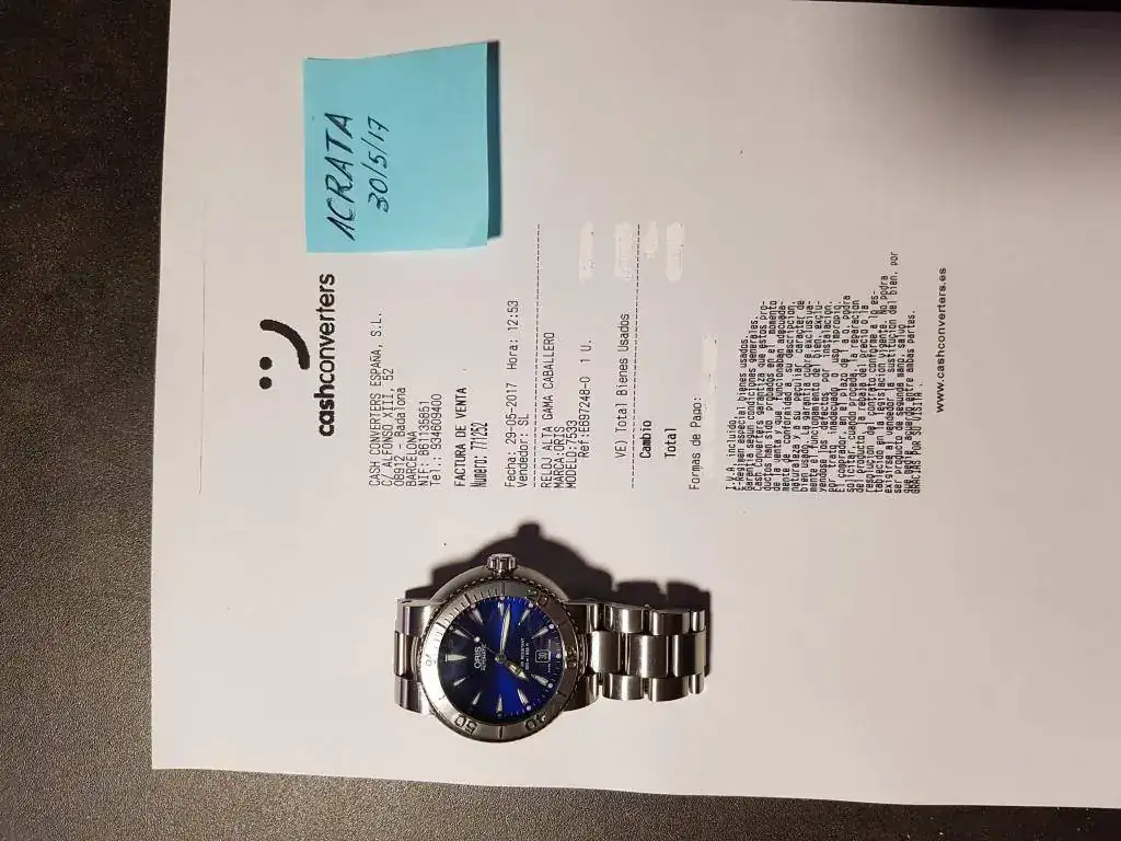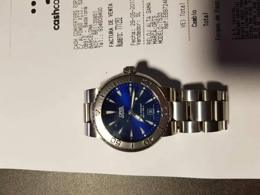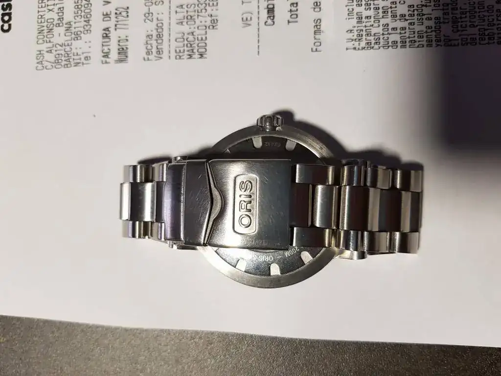 Vendo este reloj, avisando de que quien busque un reloj de segunda mano sin marcas de uso, es decir impecable, este no es su reloj (que siga buscando y cuando lo encuentre me lo diga). Suelo ir a los Cash-Converters, y en uno de ellos encontre este ORIS que consegui con cambios de cosas que tenia por casa y un diferencia en efectivo. Es muy bonito, compacto, contundente, algo grande para mi muñeca de 17, y como observación diria que el bisel que es de acero, no es el normal que lleva, no se si el que lo vendió lo consiguió aparte, desde luego es precioso, y en cualquier caso el tipico de este reloj, no es nada caro, por si alguien quiere ser muy fiel al original.