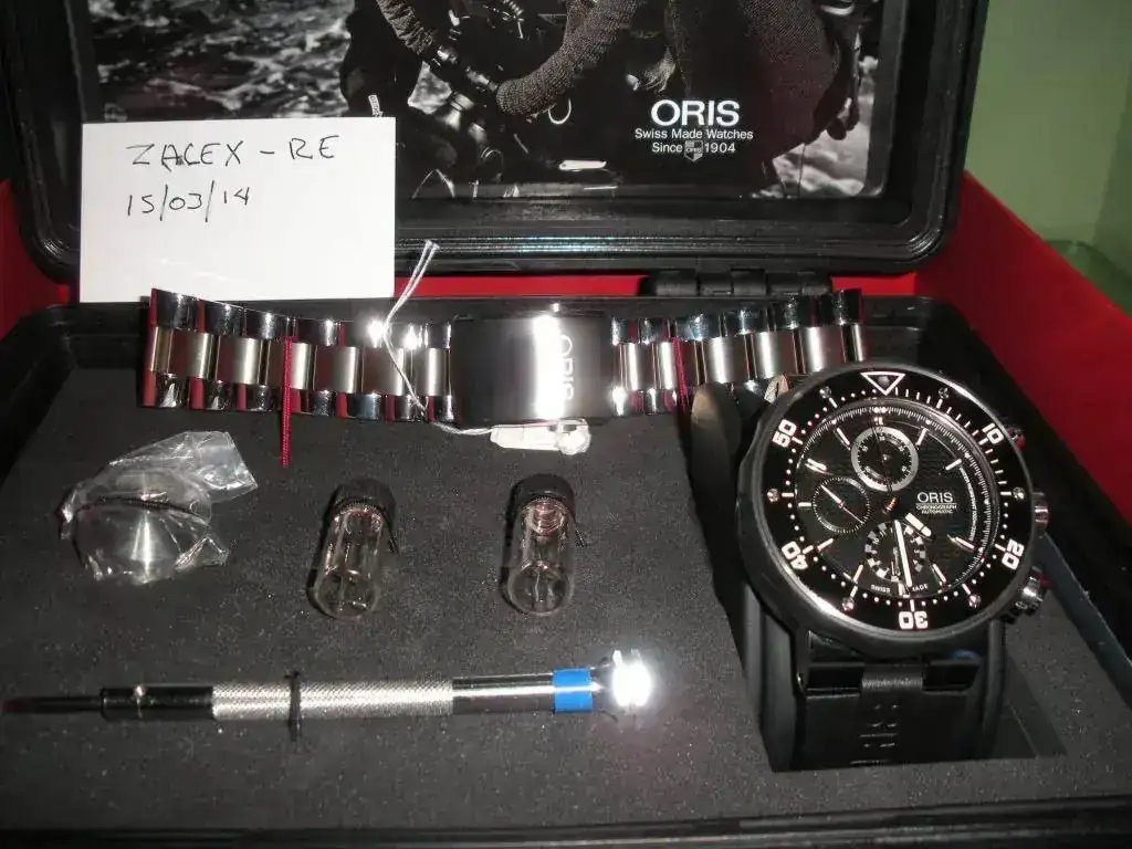 Hola a todos, vendo este fantástico Oris Prodiver Chrono en riguroso estreno, la pieza en cuestión tiene unos días de comprada y no se ha usado nunca, con lo que si la registras en MyOris tienes casi los tres años de garantía.