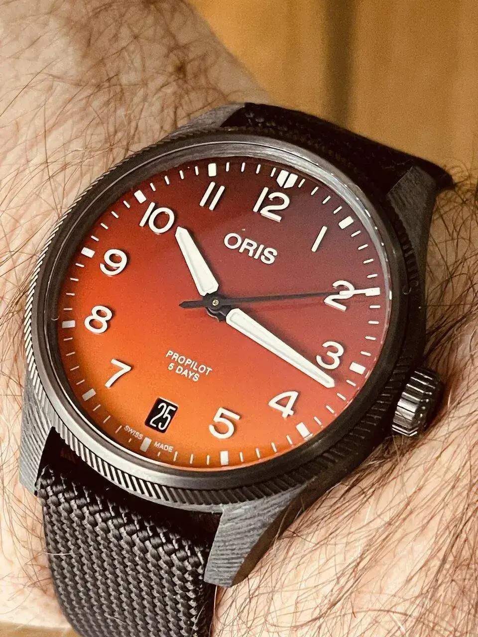 Sobre el tema del ajuste de la hora ( también he leído mucho sobre el tema ) decir que el mío , no tiene el más mínimo problema y las agujas se quedan donde las he dejado cuando empujo la corona y la enrosco , no sé si Oris ( a pesar de decir ellos mismos , que es una característica del calibre ) han modificado algo en ese calibre desde que lo presentaron por primera vez.